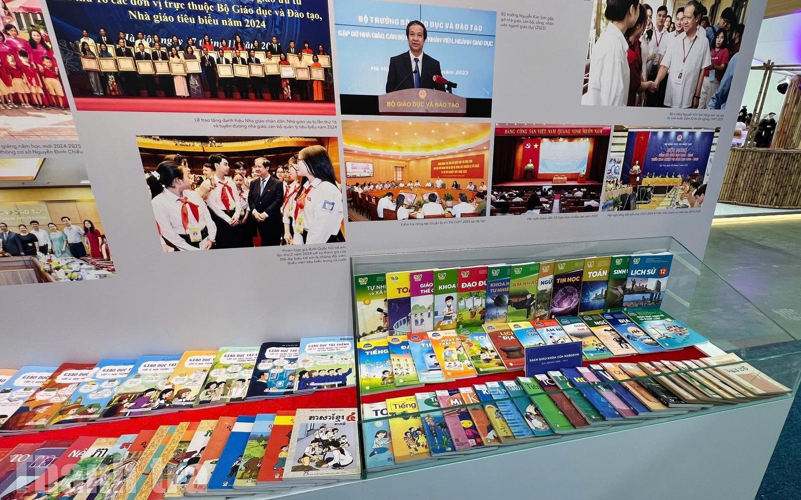 Các sản phẩm sách giáo khoa tại gian trưng bày của Bộ Giáo dục và Đào tạo tại Triển lãm thành tựu 80 năm đất nước. Ảnh: CB
