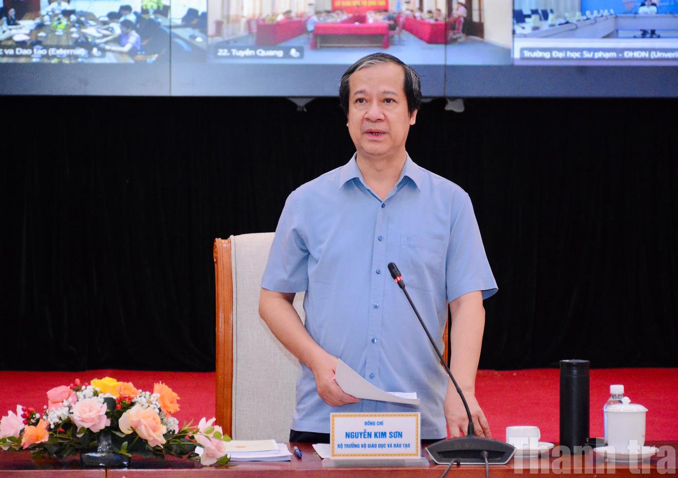 Bộ trưởng Bộ GDĐT Nguyễn Kim Sơn phát biểu tại hội nghị. Ảnh: PV