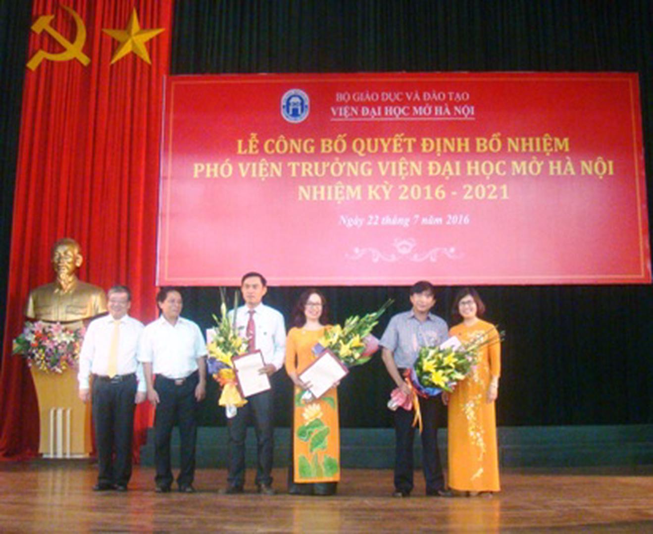 Tại buổi lễ ông Nguyễn Xuân Quế, Trưởng phòng Tổ chức hành chính đã đọc Quyết định về việc bổ nhiệm mới hai Phó viện Trưởng và bổ nhiệm lại một Phó viện trưởng. Cụ thể: Bổ nhiệm lại TS. Nguyễn Cao Chương và bổ nhiệm mới TS. Dương Thăng Long và TS. Nguyễn Thị Nhung làm Phó viện trưởng Viện Đại học Mở Hà Nội nhiệm kỳ 2016 - 2021.