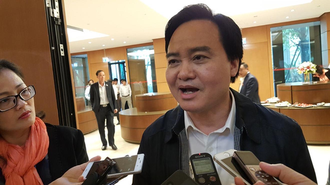 Bộ trưởng Bộ Giáo dục - Đào tạo Phùng Xuân Nhạ trao đổi với báo giới bên hành lang Quốc hội sáng 14/11 (Ảnh: Thế Kha)