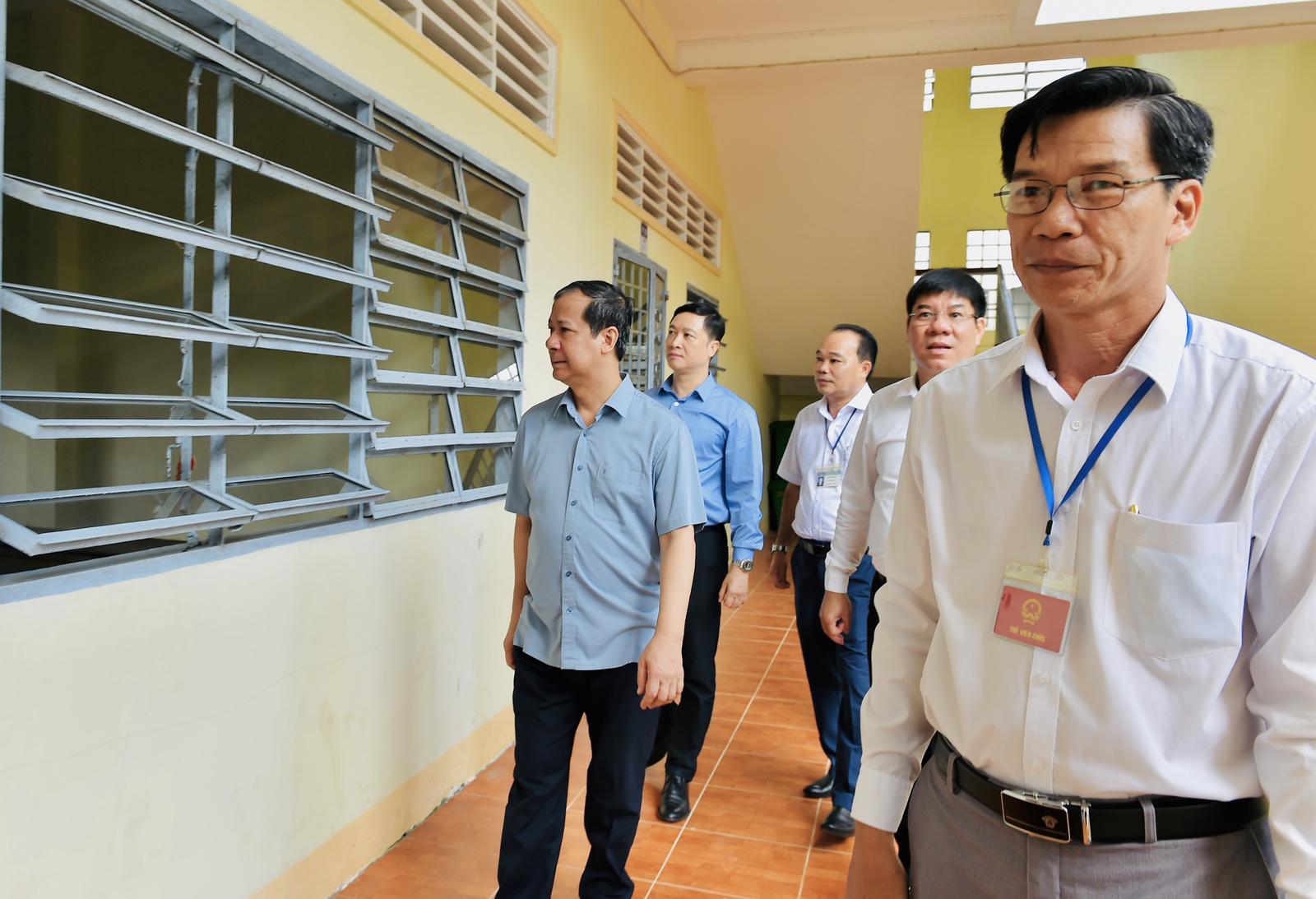 Đoàn công tác kiểm tra cơ sở vật chất, địa điểm tổ chức thi tại Trường THPT Vị Thanh. Ảnh TT