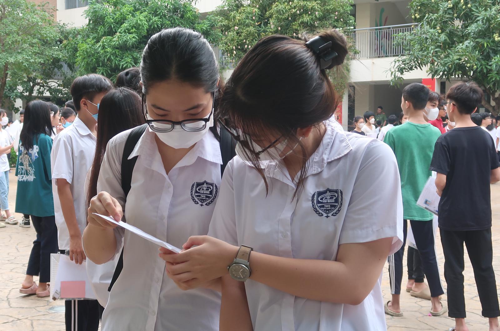 Thí sinh tranh thủ ôn bài trước giờ thi môn Ngữ văn. Ảnh: HH