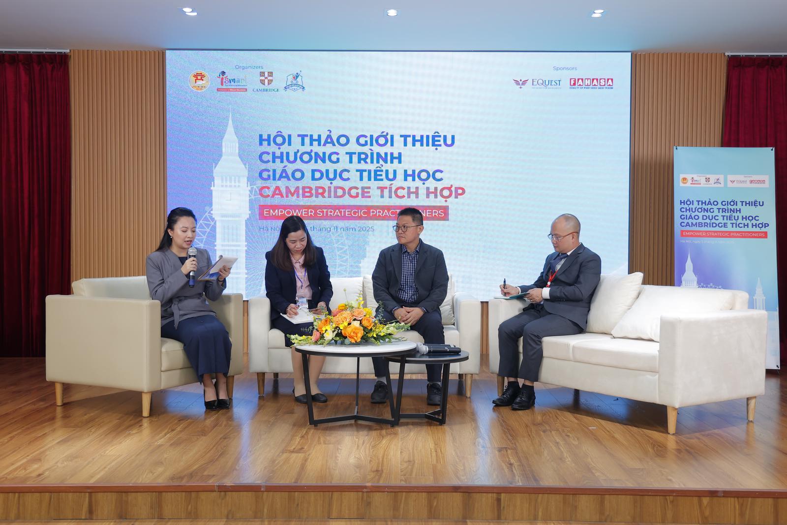 Đại diện iSMART, Cambridge và lãnh đạo giáo dục tại trường công lập chia sẻ về vấn đề triển khai Chương trình Tiểu học Cambridge.