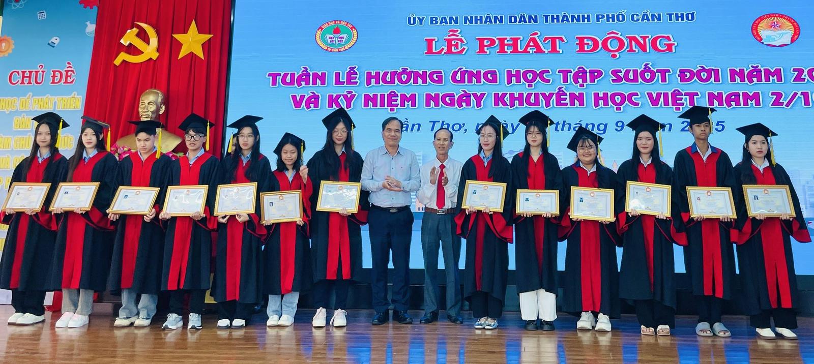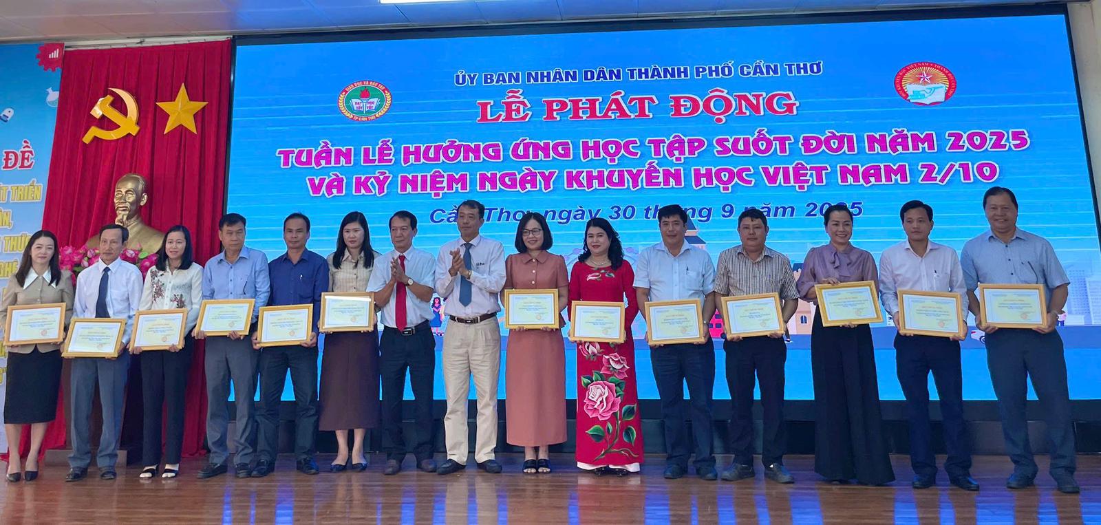 (Thanh tra) - Sáng 30/9, Hội Khuyến học TP Cần Thơ phối hợp Sở Giáo dục và Đào tạo thành phố long trọng tổ chức Lễ phát động “Tuần lễ hưởng ứng học tập suốt đời” năm 2025 và kỷ niệm Ngày Khuyến học Việt Nam 2/10. Phó Chủ tịch UBND thành phố Nguyễn Văn Khởi, lãnh đạo Sở Giáo dục và Đào tạo cùng đại diện các trường học trên địa bàn đã cùng tham dự sự kiện.