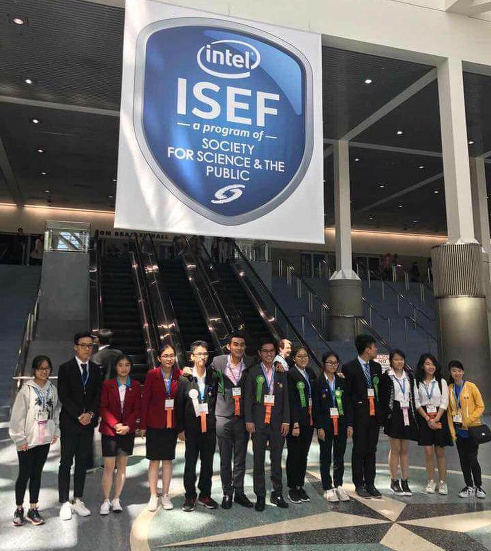 Phạm Huy cùng đoàn học sinh của Việt Nam tham dự Cuộc thi khoa học kỹ thuật quốc tế do Intel tổ chức (Intel ISEF) tại Mỹ. Ảnh: LCL
