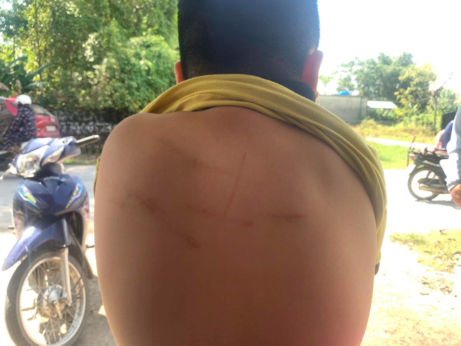 Hiện tại các vết lằn trên lưng của học sinh P.Đ.Q., lớp 4B, bị cô giáo Lê Thị Hải đánh sau 4 ngày vẫn còn bầm tím. Ảnh: Hương Trà.