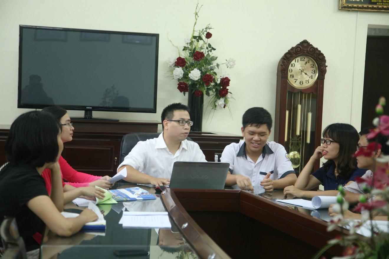 Lâm Vũ Tuấn được các thầy cô đồng hành ôn tập kiến thức chuẩn bị cho cuộc thi Chung kết Olympia năm 2016.