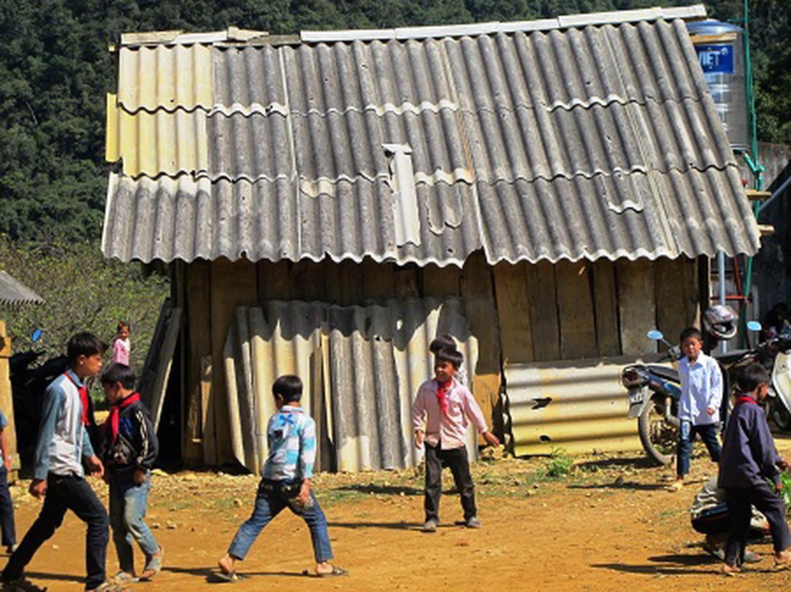 Từ bản Ba Cốp, thầy Cường đưa tôi vượt 2 ngọn núi đến điểm trường bản Chua Tai. Con đường đất nhầy nhụa, dựng đứng. Thầy Cường vào nhà dân bên đường gửi xe máy. Chúng tôi đi bộ khoảng 3km thì đến điểm trường Chua Tai. Đang giờ giải lao, các em học sinh túm tụm nô đùa trên bãi cỏ trước lớp học. Điểm trường này có 3 lớp, 19 học sinh, 3 giáo viên.