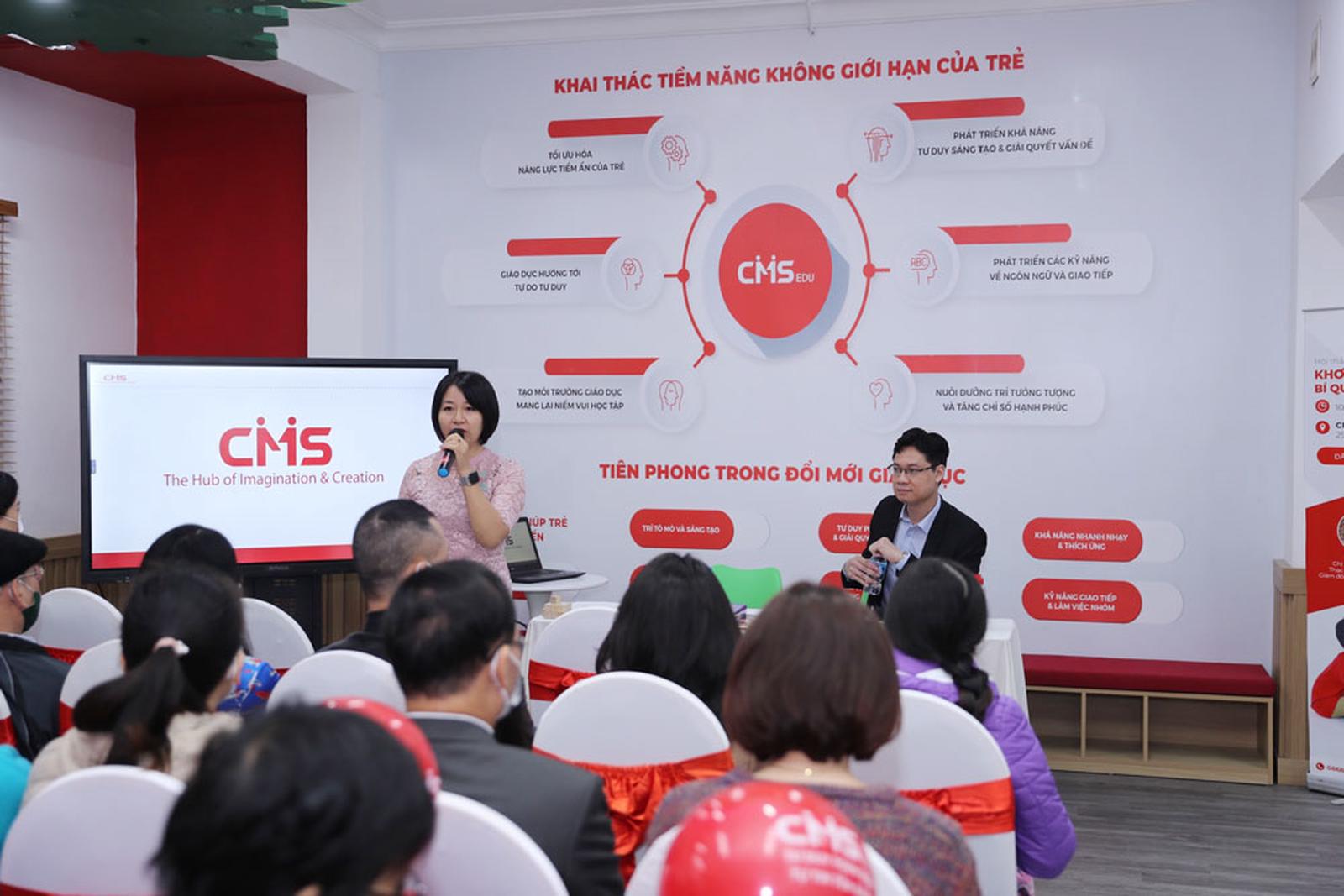 Hội thảo có sự tham sự góp mặt của diễn giả Tiến sĩ Toán học Phạm Anh Minh - Cố vấn chuyên môn của CMS Edu và diễn giả ThS. Ngôn ngữ học Đàm Vân Anh - Giám đốc Trung tâm CMS Edu. Hội thảo đã cung cấp những kiến thức giúp phụ huynh hiểu hơn về tâm lý của trẻ và xác định mức độ cũng như thiên hướng tư duy của con, từ đó có phương pháp vừa học vừa chơi nhằm kích thích tư duy phù hợp cho từng lứa tuổi.