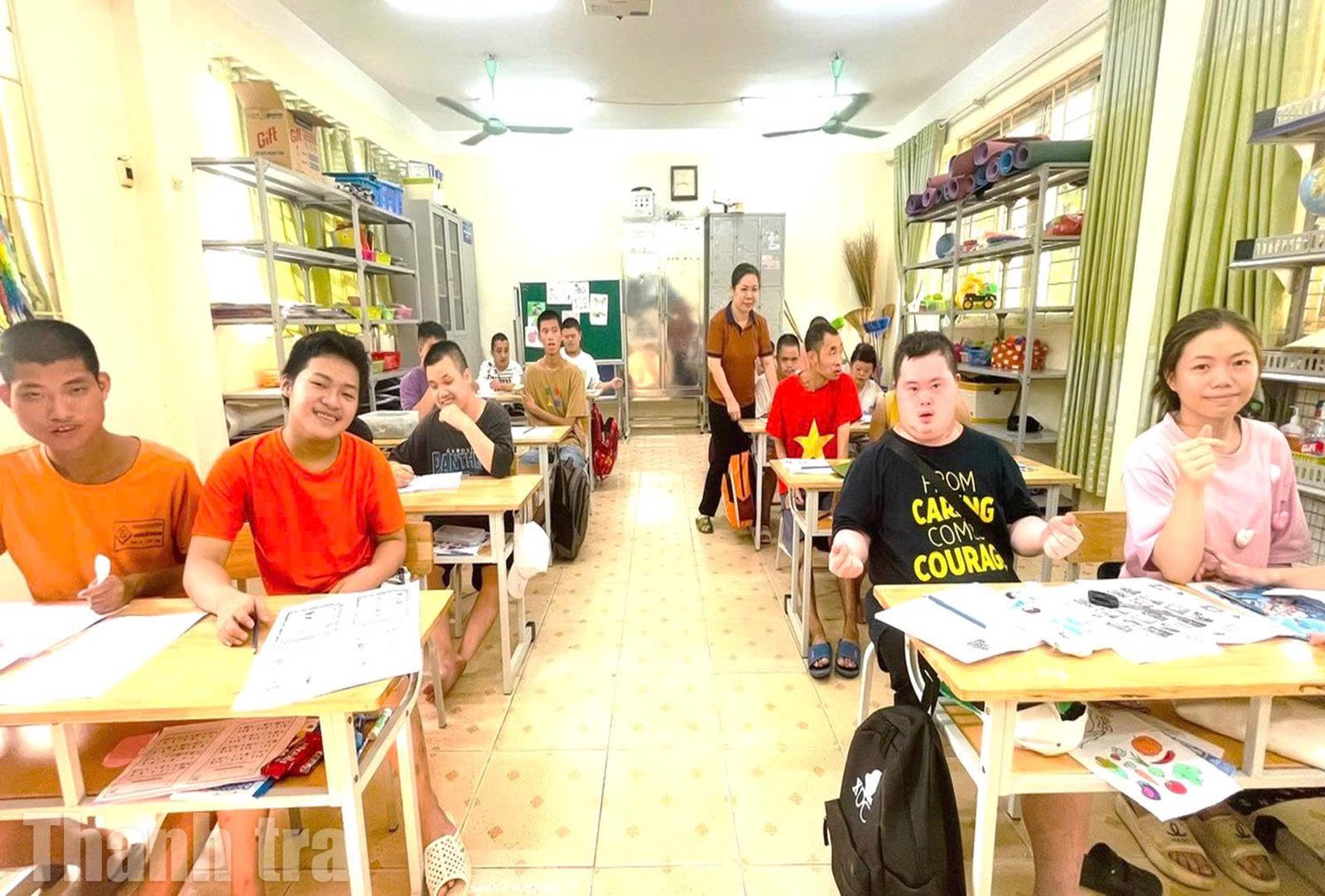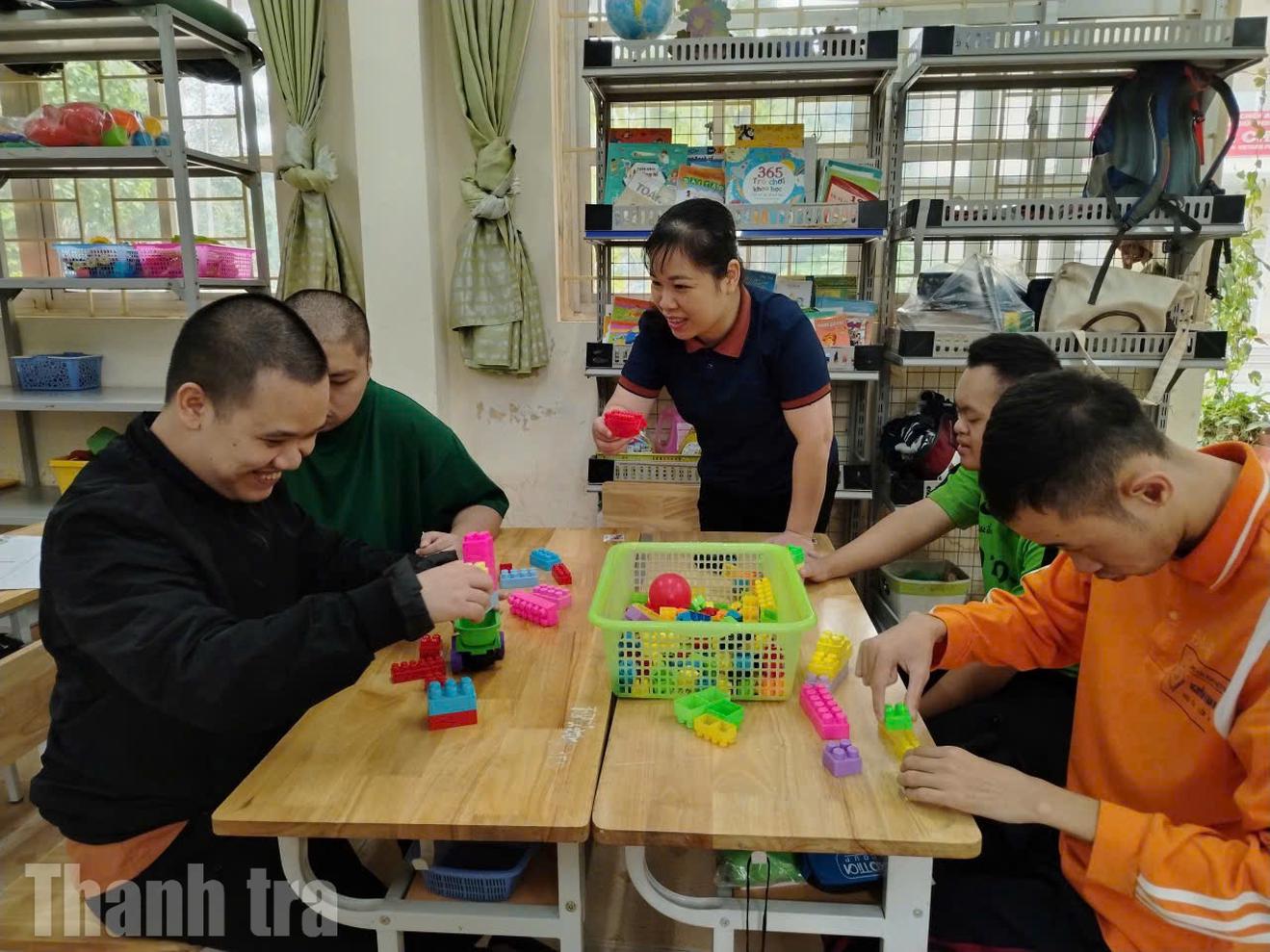 - Lớp học của tôi có 12 em, có 3 mức độ nhận thức và độ tuổi từ 14 đến 25. Các em không chỉ gặp phải những khiếm khuyết về cơ thể mà trí tuệ của các em cũng rất hạn chế chỉ ngây ngô như một đứa trẻ mầm non, tiểu học. Để có thể dạy được các em đầu tiên tôi phải đánh giá được khả năng nhận thức của từng em để từ đó xây dựng các chương trình giảng dạy phù hợp với từng trẻ.