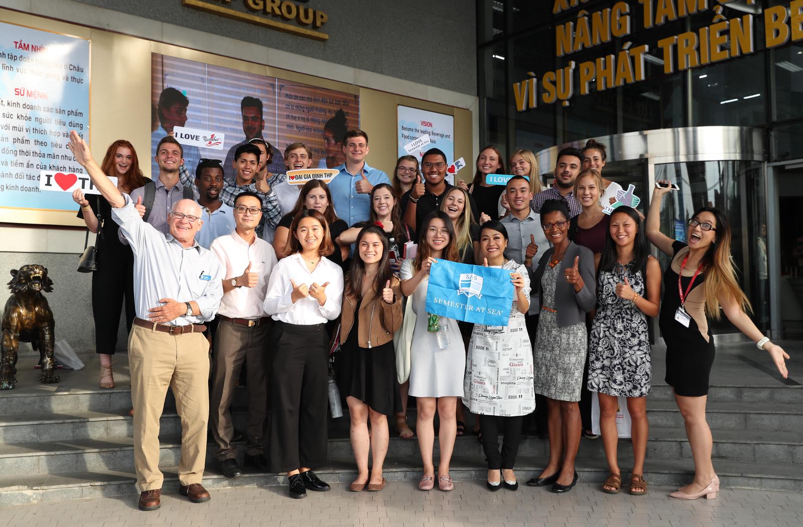 Ngay sau khi tàu cập cảng ở TP.HCM, đoàn sinh viên quốc tế gần 30 người đã dành trọn một ngày để trải nghiệm thực tế các hoạt động như tham quan dây chuyền Aseptic của nhà máy sản xuất nước giải khát, nhận được chia sẻ kinh nghiệm thực tế về nghiên cứu và phát triển sản phẩm mới, xây dựng thương hiệu sản phẩm, quản lý nhãn hàng và các tình huống kinh doanh điển hình (case study) đã được cuốn sách tiếng Anh Competing with Giants của tác giả Trần Uyên Phương, Phó tổng giám đốc Tập đoàn Tân Hiệp Phát nhắc đến.