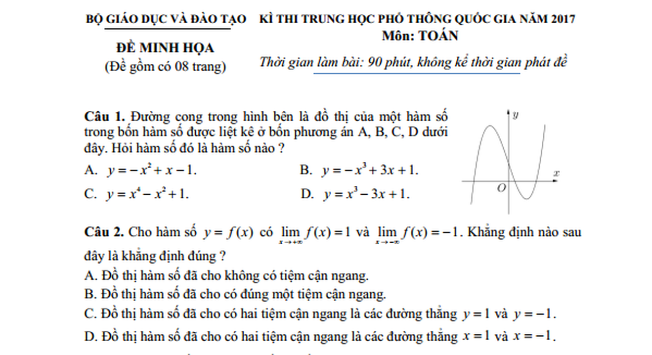 (Thanh tra) - Chiều 5/10, Bộ Giáo dục và Đào tạo đã chính thức công bố đề thi minh họa của kỳ thi THPT Quốc gia năm 2017.