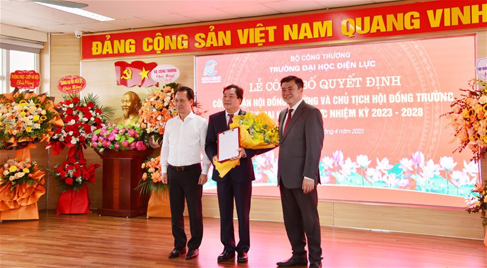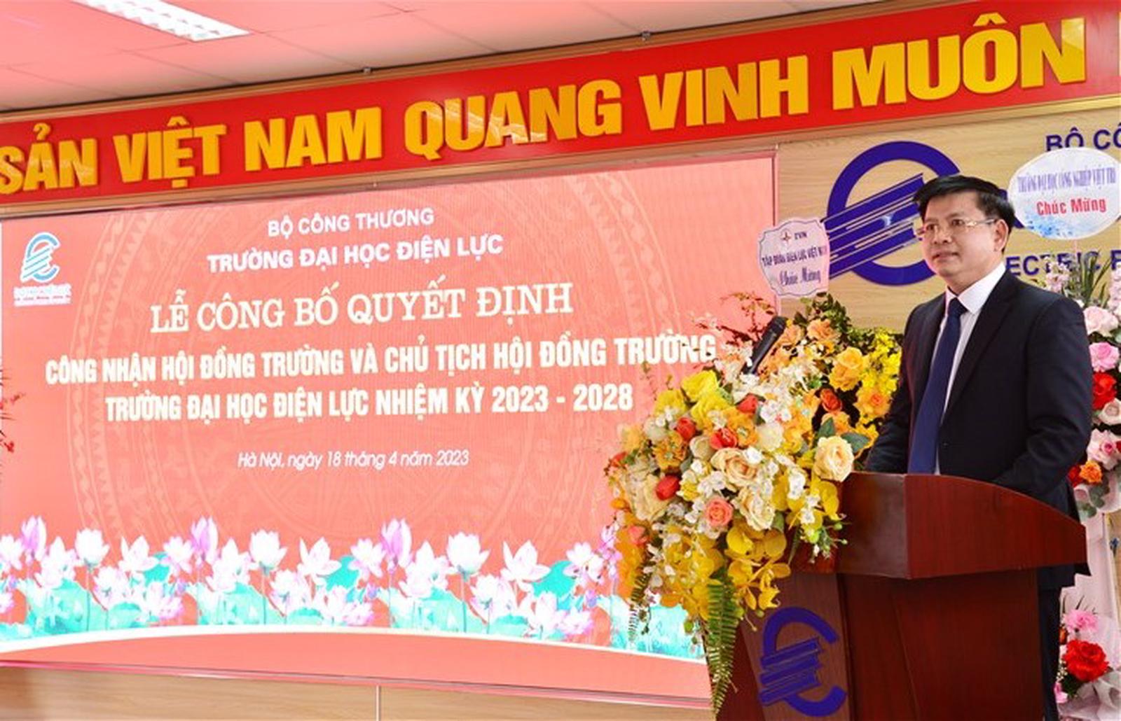 Tại buổi lễ, Phó Vụ trưởng Vụ Tổ chức - Cán bộ, Bộ Công thương Nguyễn Thế Hiếu đã công bố Quyết định công nhận Hội đồng trường Trường Đại học Điện lực nhiệm kỳ 2023 - 2028, bao gồm 19 thành viên.
