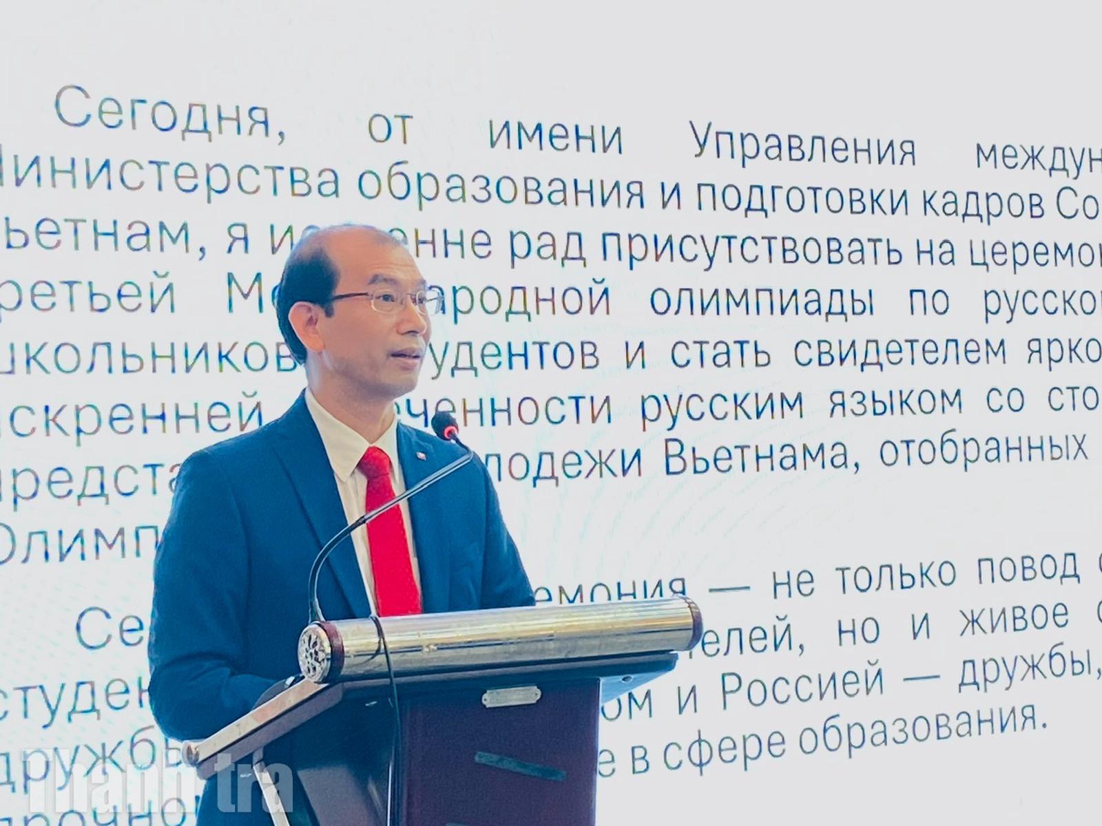 (Thanh tra) - Phó Cục trưởng Cục Hợp tác quốc tế, Bộ Giáo dục và Đào tạo Nguyễn Tiến Dũng nhấn mạnh, Olympic tiếng Nga là “minh chứng sống động cho trí tuệ, bản lĩnh và khát vọng vươn xa của tuổi trẻ Việt Nam”, đồng thời là biểu tượng của hợp tác giáo dục bền chặt Việt Nam – Liên bang Nga.