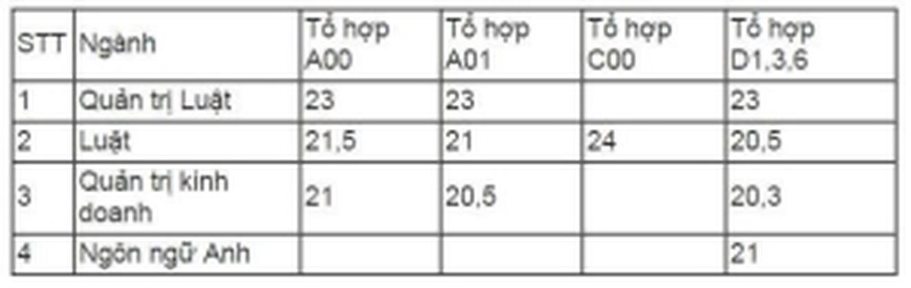 Điểm chuẩn cao nhất vào Đại học Luật TP HCM năm nay là 24 với ngành Luật và thấp nhất 20,3 đối với ngành Quản trị kinh doanh.