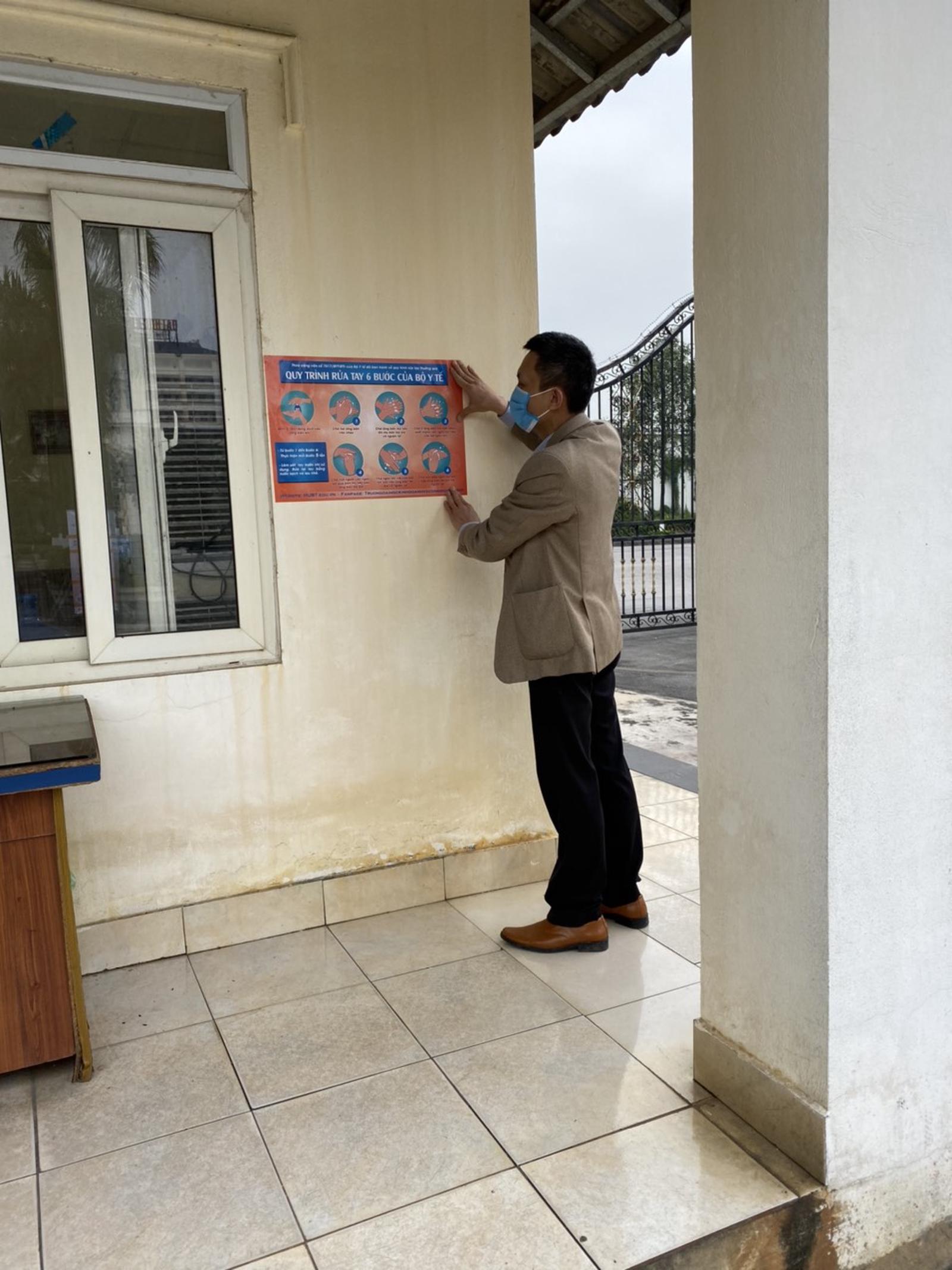 Các hướng dẫn phòng bệnh, hướng dẫn quy trình rửa tay đúng cách… được bố trí, dán tại tất cả các tòa nhà, ký túc xá…