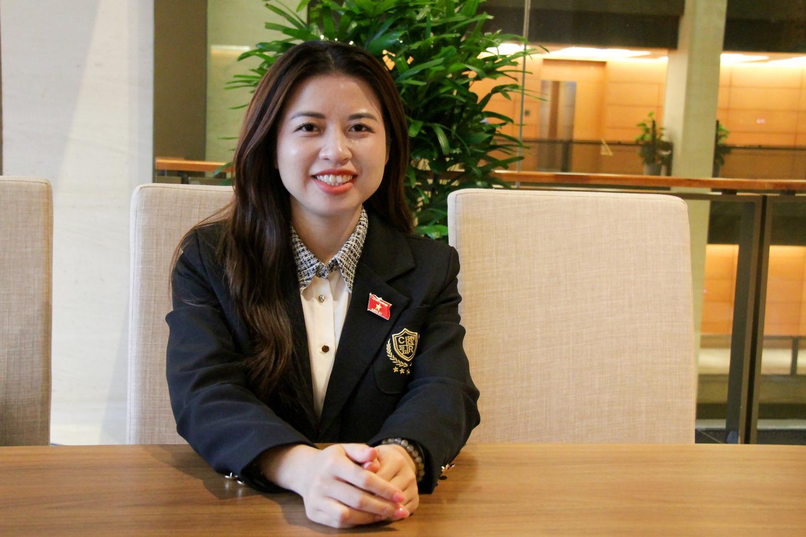 ĐBQH Nguyễn Thị Hà(đoàn ĐBQH tỉnh Bắc Ninh) trao đổi với phóng viên PetroTimes bên hành lang Quốc hội (Ảnh: Mạnh Tưởng)