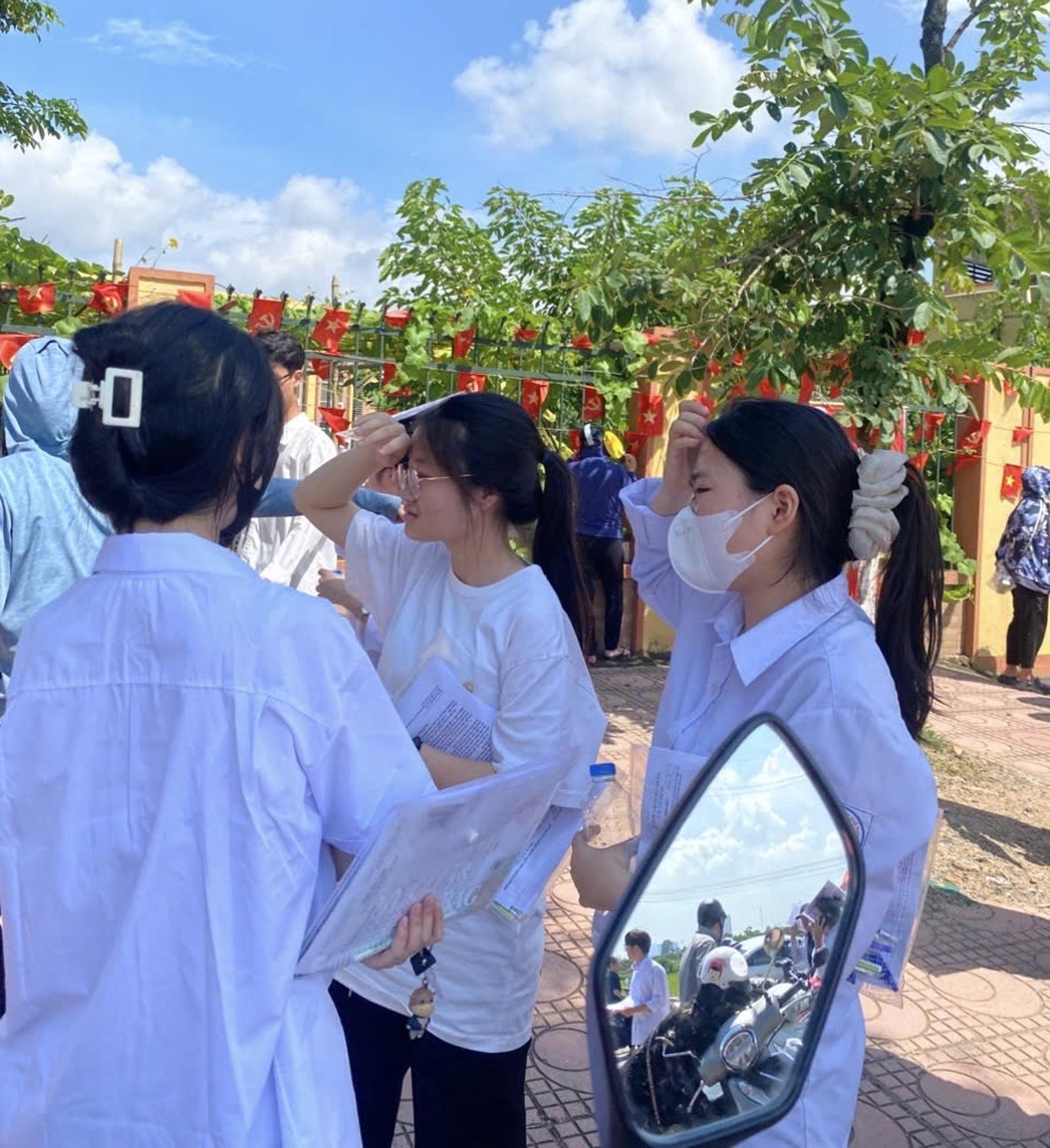 Chờ đón con hoàn thành môn thi, chị Phạm Thị Hường chứng kiến một vài thí sinh ra về với nét mặt buồn bã, thậm chí có thí sinh đã ôm chầm bố mẹ khóc và kêu đề khó quá. Chị Hường cho biết nhìn các con cảm xúc vui buồn lẫn lộn, lúc này con cần sự chia sẻ, động viên từ gia đình và bố mẹ để tiếp sức cho các môn thi tự chọn vào ngày mai.