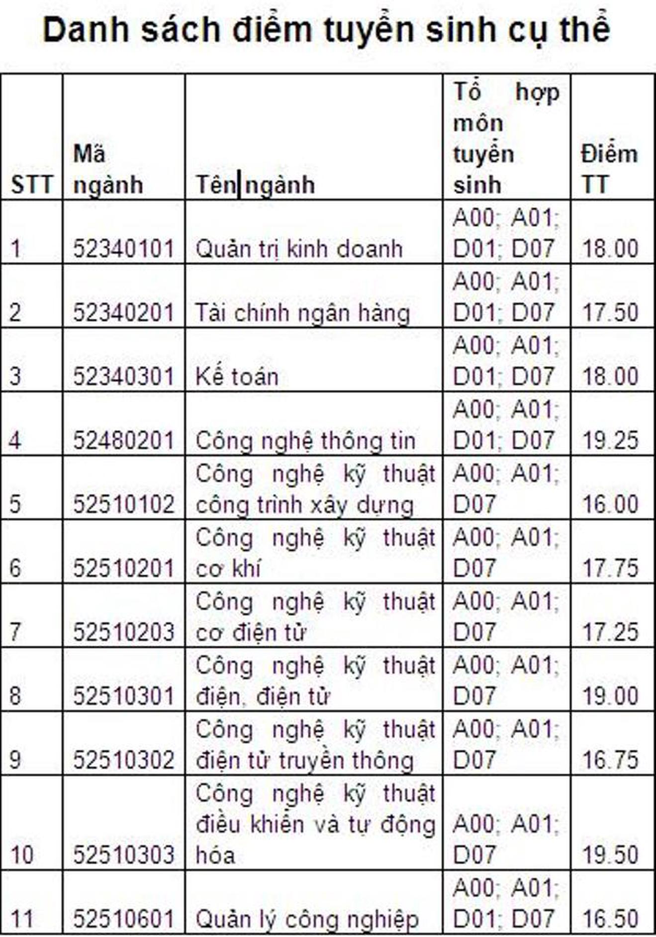 (Thanh tra)- Trường Đại học Điện lực vừa thông báo điểm trúng tuyển đợt I tuyển sinh đại học hệ chính quy. Theo đó, điểm chuẩn cao nhất thuộc về ngành Công nghệ kỹ thuật điều khiển và tự động hóa, mã ngành 52510303.