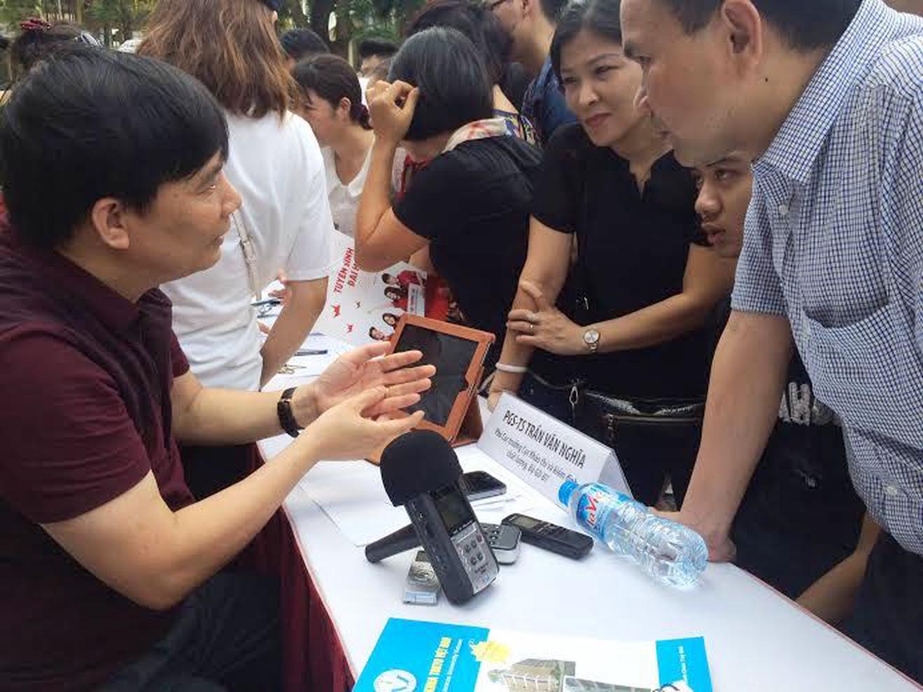 Ông Trần Văn Nghĩa - Phó cục trưởng Cục Khảo thí và Kiểm định chất lượng giáo dục tư vấn cho thí sinh và người nhà. Ảnh: HH