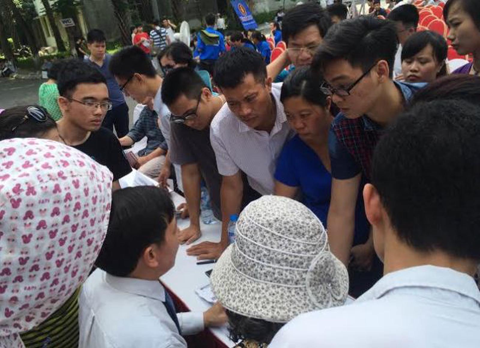 Chen chân ở ngày hội tư vấn tuyển sinh Rất đông thí sinh và người nhà tham dự ngày hội “Tư vấn tuyển sinh - hướng nghiệp”. Ảnh: HH Ngày hội “Tư vấn tuyển sinh - hướng nghiệp” do Bộ GD&ĐT phối hợp với báo Tuổi Trẻ tổ chức nhằm giúp thí sinh tìm hiểu các ngành đào tạo của các trường ĐH. Các chuyên gia của Bộ GD&ĐT và các trường ĐH lớn như ĐH Bách khoa, ĐH Quốc gia, ĐH Kinh tế Quốc dân ĐH Ngoại thương... đã có mặt tại ngày hội để tư vấn tư vấn giải đáp mọi thắc mắc của thí sinh và phụ huynh về việc chọn ngành, chọn trường, cách tham gia xét tuyển ĐH, CĐ năm 2016. Thí sinh tham gia ngày hội được tiếp cận thông tin của gần 70 trường CĐ, ĐH tại Hà Nội.
