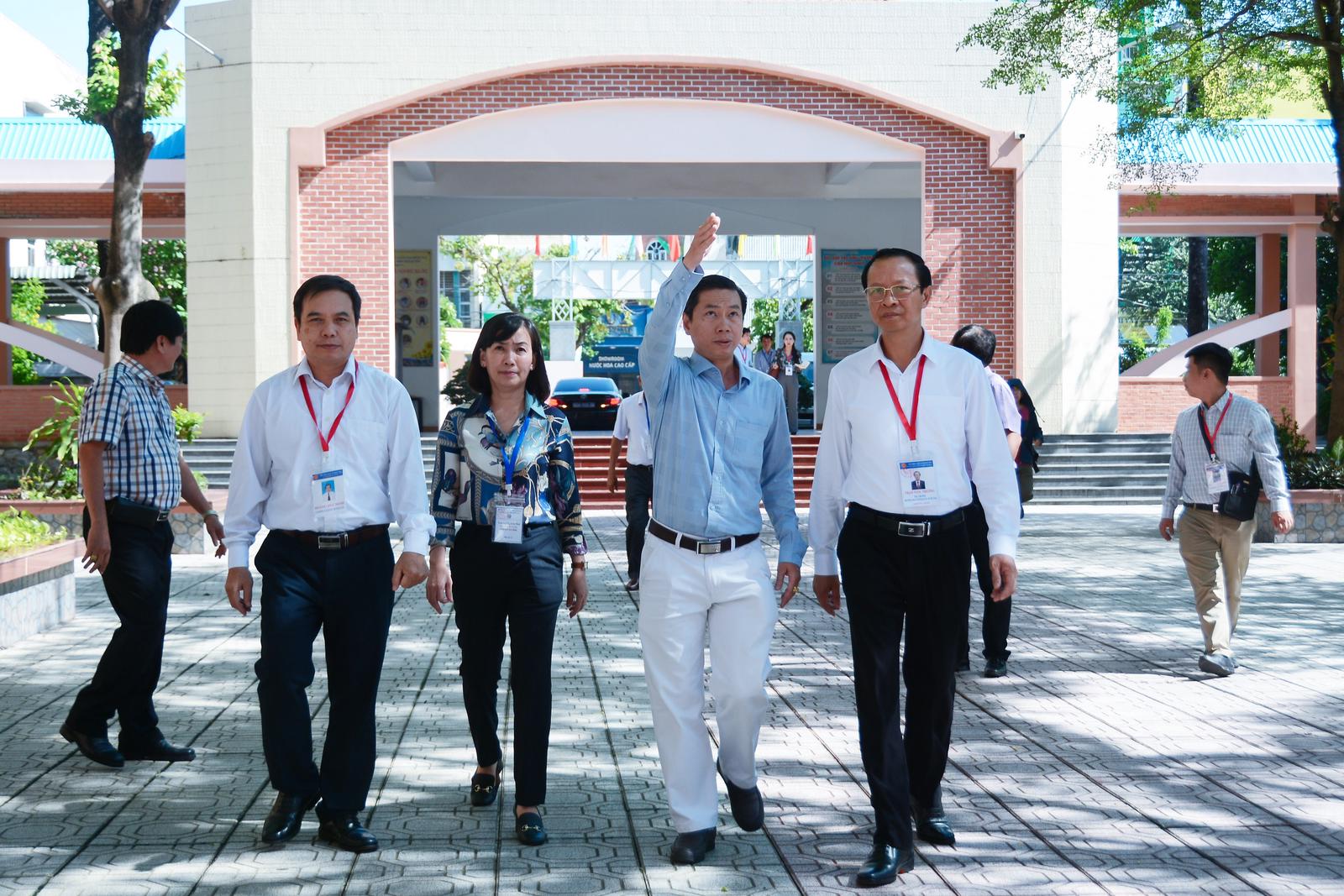 Đoàn công tác số 1 của Ban Chỉ đạo quốc gia kiểm tra tại Điểm thi Trường THPT Ngô Quyền (Đồng Nai). Ảnh: TT