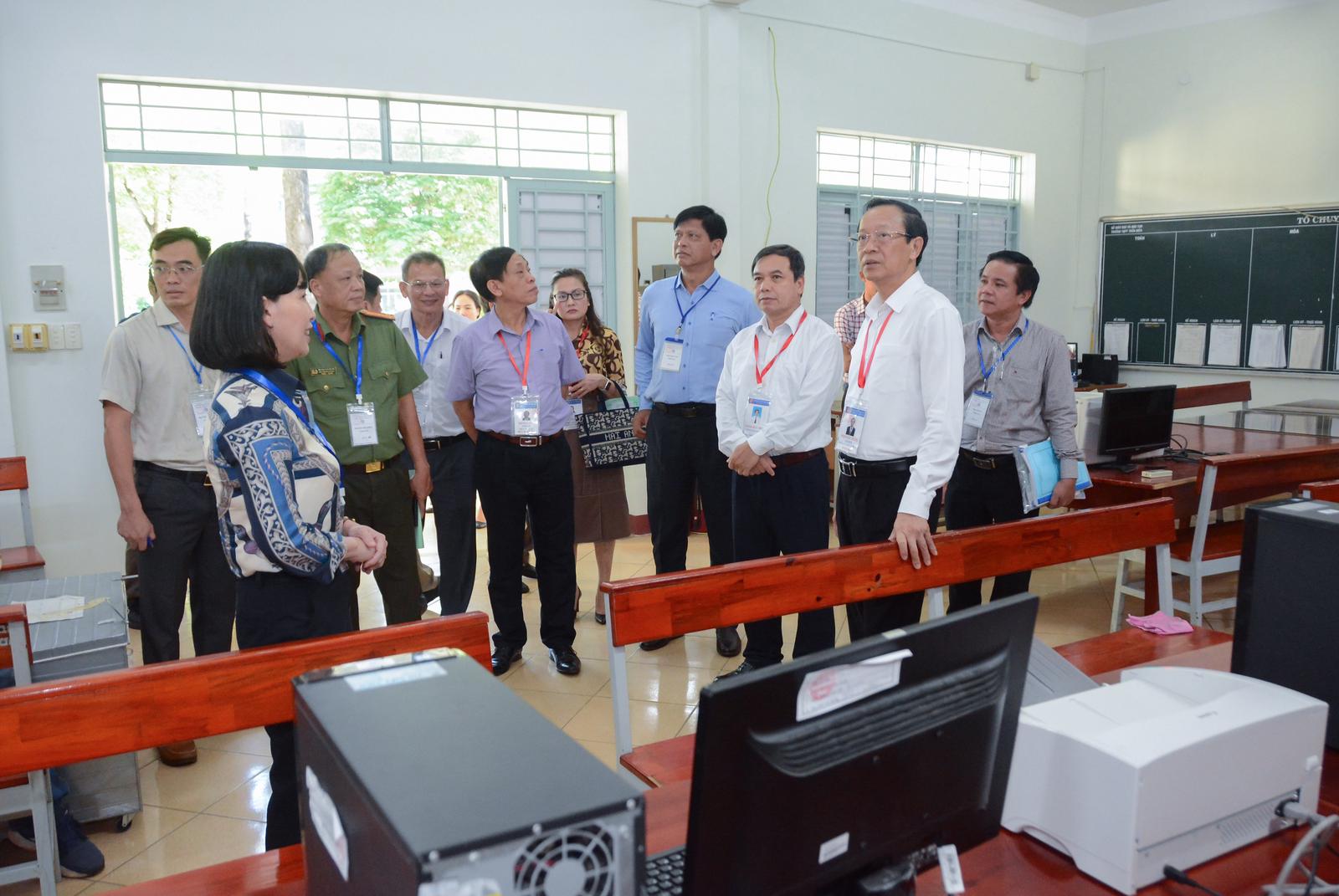 Đoàn công tác số 1 của Ban Chỉ đạo quốc gia kiểm tra tại điểm thi Trường THPT Trấn Biên (Đồng Nai). Ảnh: TT