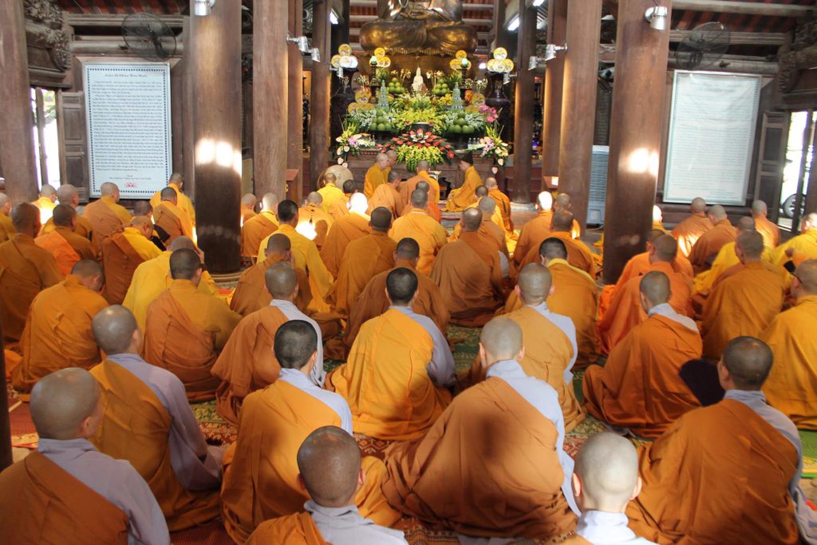 Đại lão Hòa thượng trong lễ cầu nguyện tại chùa Quán Sứ, Hà Nội. Ảnh: GHPGVN