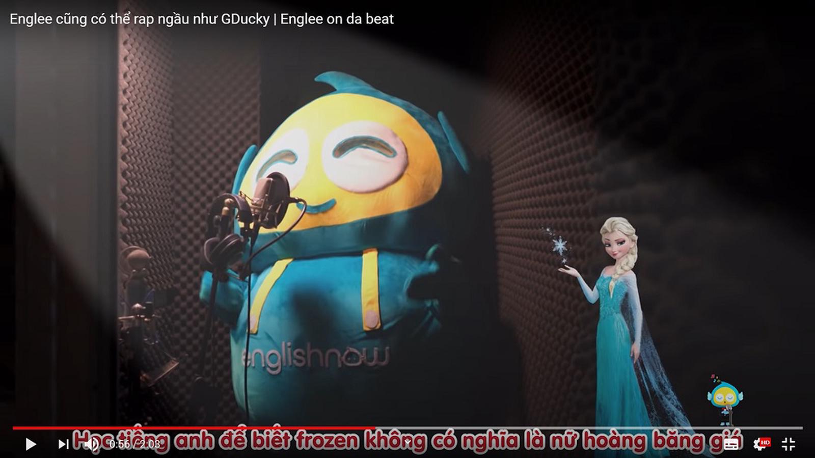 Ai ngờ rằng một trung tâm Anh ngữ có thể viết một bài Rap nói lên ưu điểm của việc học tiếng Anh và giới thiệu về những đặc trưng của thương hiệu mình. Một số câu ấn tượng mà người trong nghề gọi là “punchline” điển hình như “Học tiếng Anh để giao lưu văn hóa - Học tiếng Anh để biết Frozen không có nghĩa là Nữ hoàng băng giá”. Lời Rap chơi vần đúng điệu lại lồng ghép chất liệu hoạt hình gần gũi với trẻ em (Phim Frozen - Nữ hoàng băng giá).