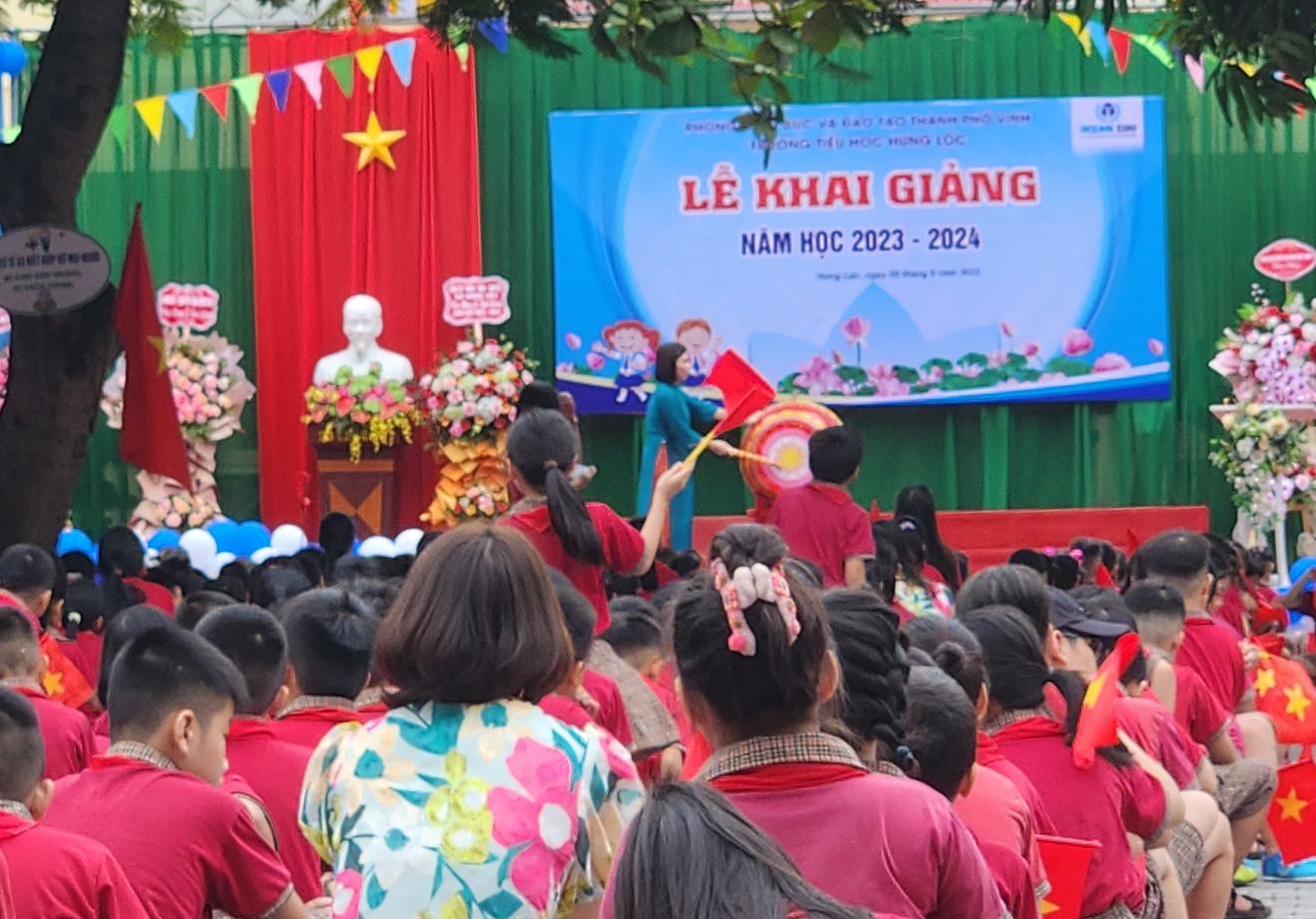 Lễ khai giảng trên địa bàn tỉnh Nghệ An được đồng loạt diễn ra từ 7h30 phút. Lễ khai giảng được tổ chức ngắn gọn, trang trọng, phù hợp với tình hình thực tế của nhà trường và tâm lý lứa tuổi học sinh mỗi cấp học, tạo không khí vui tươi, phấn khởi của ngày khai giảng - ngày hội toàn dân đưa trẻ đến trường.