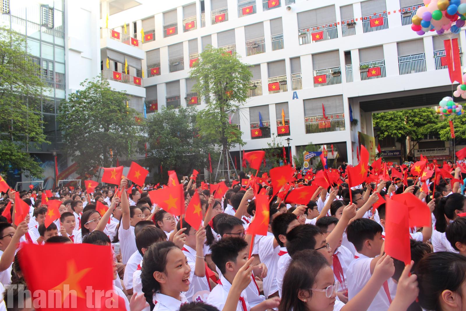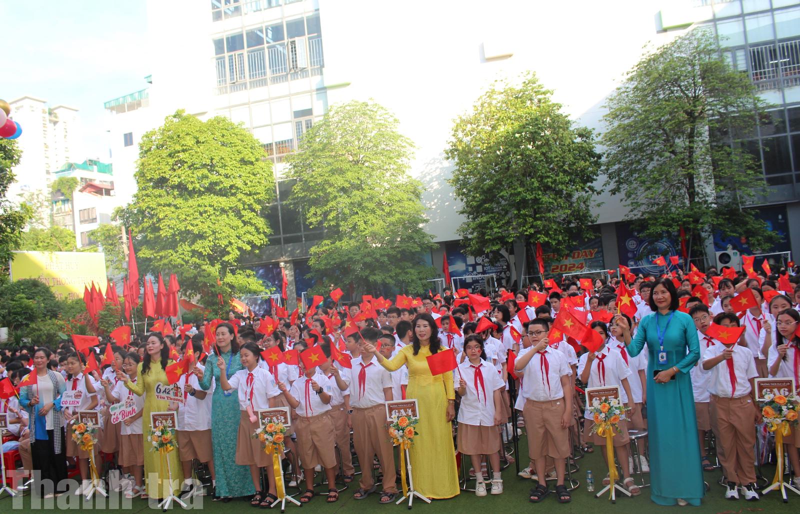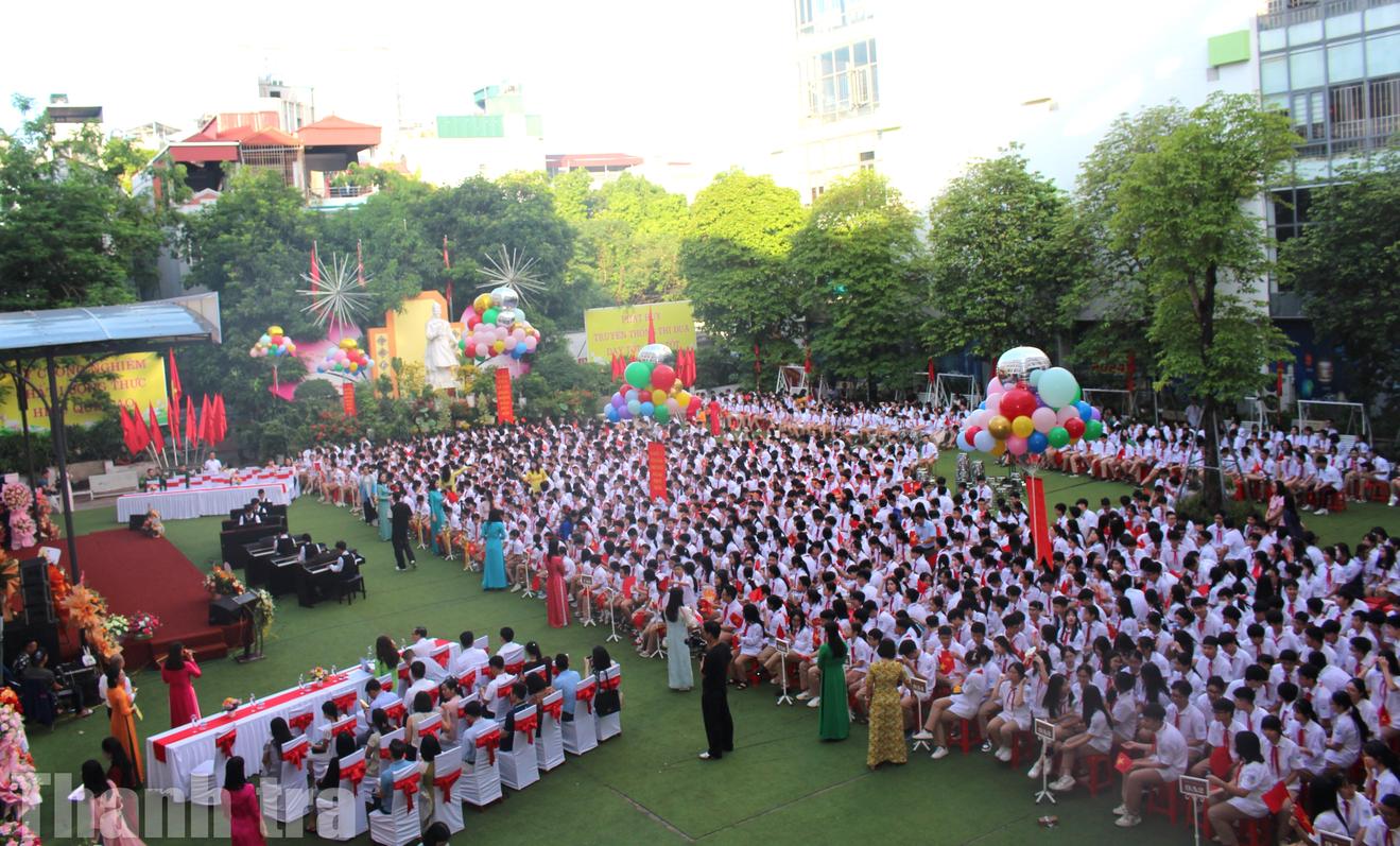 Tại Hà Nội, các trường tổ chức lễ đón học sinh đầu cấp từ rất sớm để kịp tiếp sóng lễ kỷ niệm thành lập Bộ Quốc gia giáo dục từ 8h.