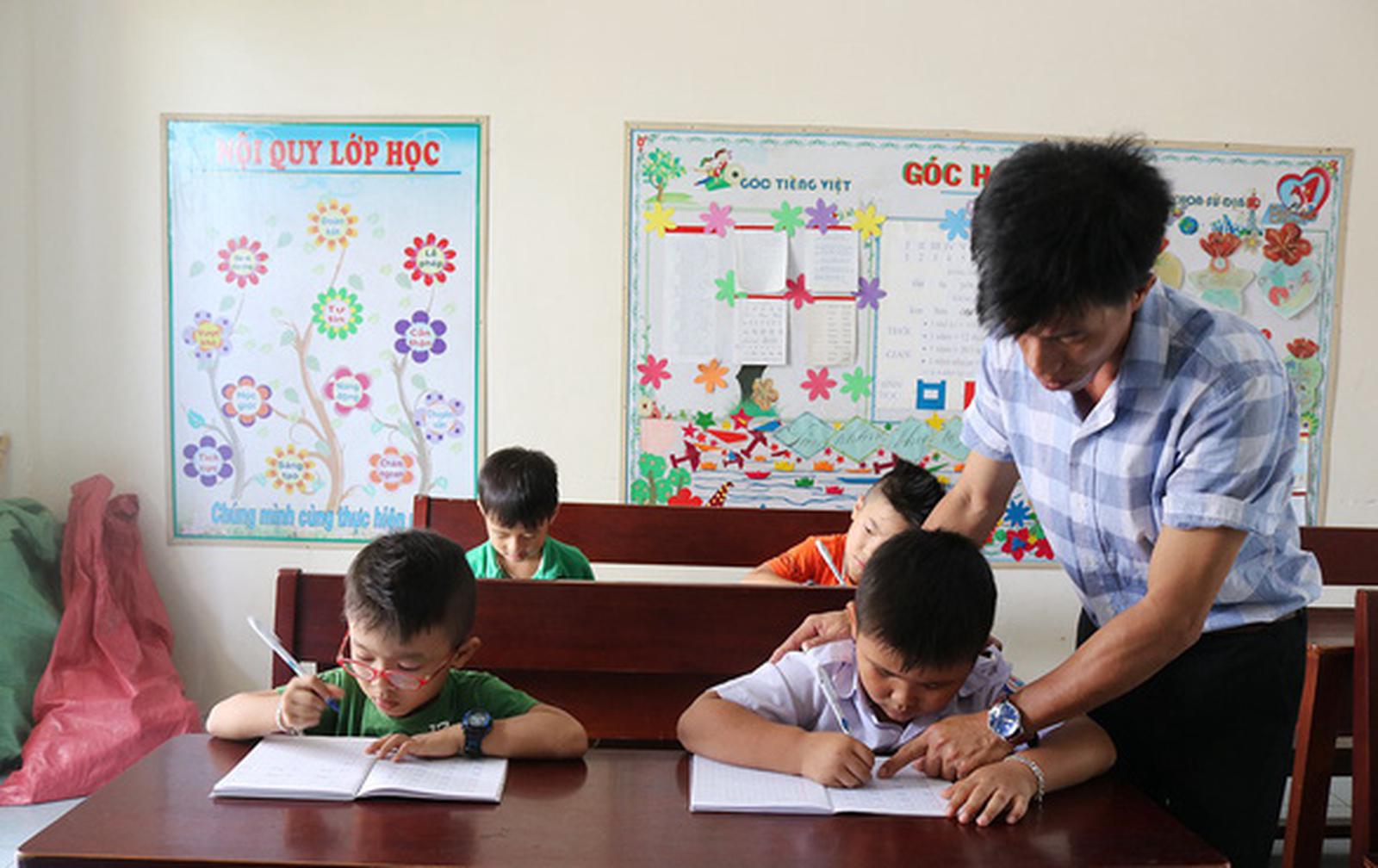 Thầy giáo Nguyễn Hữu Phú chỉ bài cho các em học sinh. Ảnh: Nhân vật cung cấp