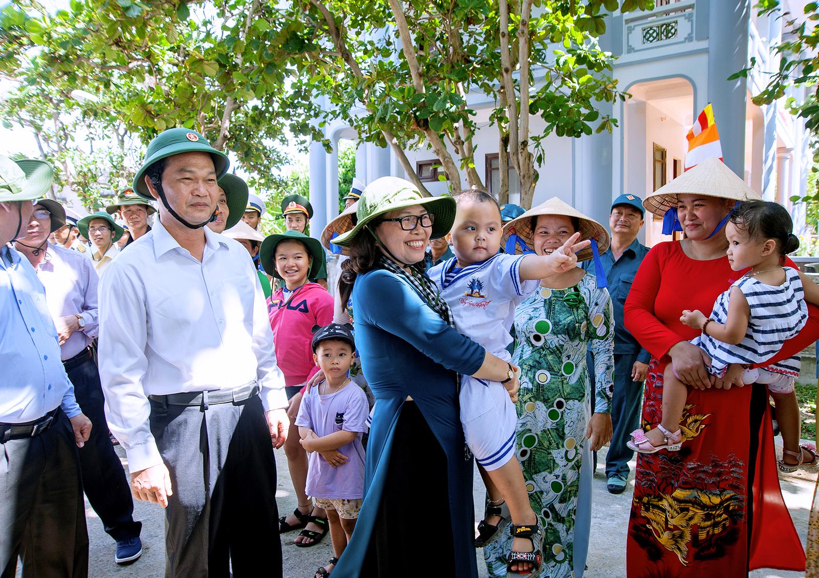 Học sinh Trường Sa với khách đất liền. Ảnh: Mai Thắng