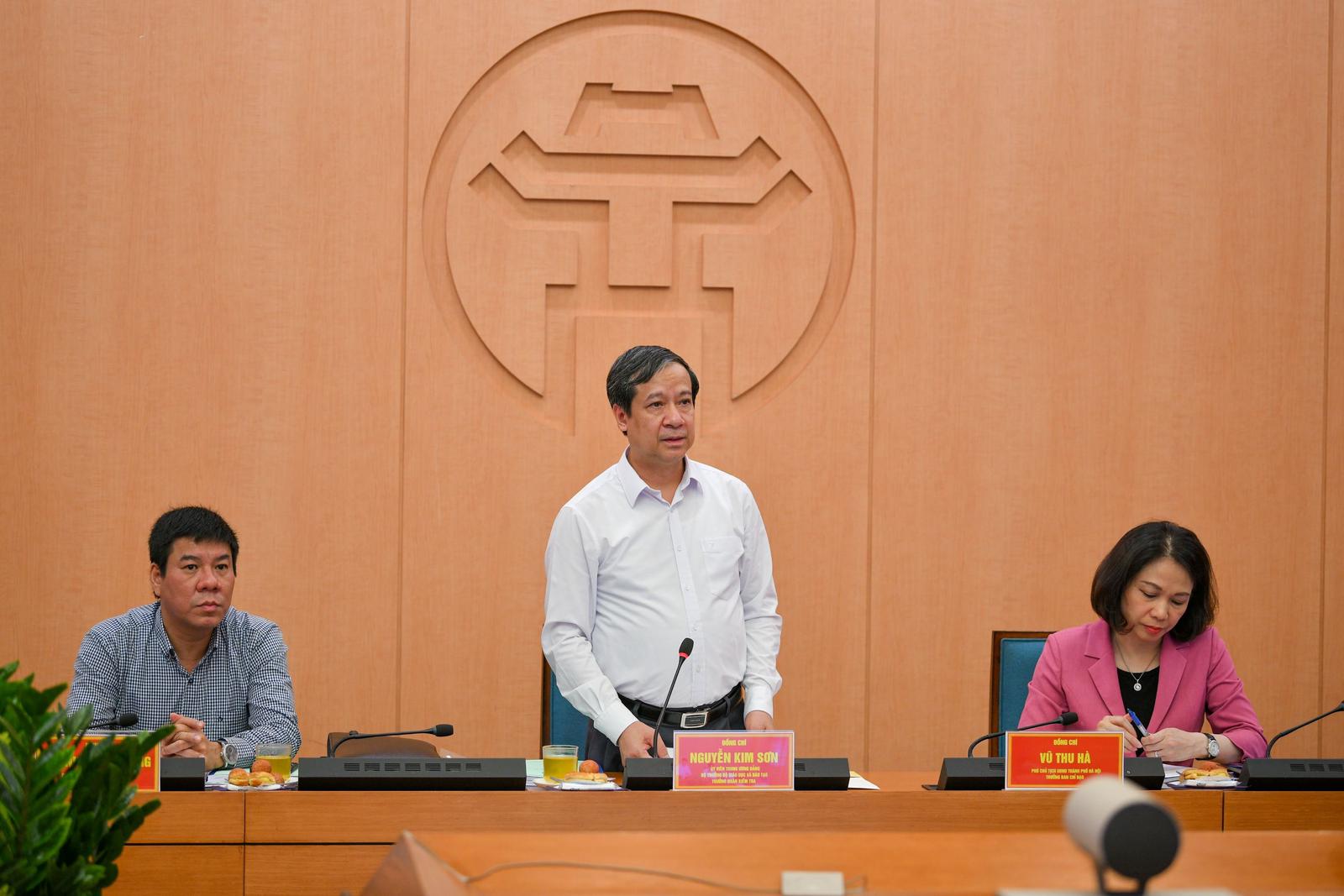 Đối với học sinh, Bộ trưởng Nguyễn Kim Sơn mong muốn TP Hà Nội tiếp tục có những quan tâm, hỗ trợ, bởi đây là những học sinh chịu thiệt thòi do ảnh hưởng ảnh của dịch Covid-19. Ngoài ra, Bộ trưởng cũng lưu ý TP Hà Nội quan tâm xử lý quyền lợi cho những trường hợp thí sinh có chứng chỉ ngoại ngữ quốc tế sau ngày 10/9/2022 được miễn thi môn ngoại ngữ theo công văn mới đây của Bộ GDĐT và kịp thời giải đáp thông tin đầy đủ cho thí sinh, phụ huynh.