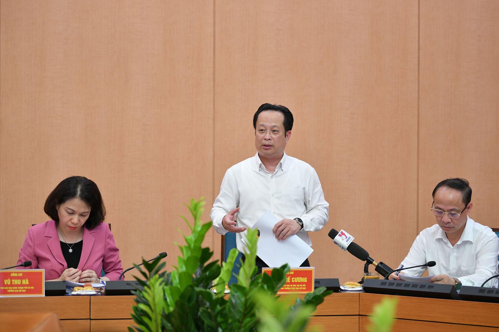 Phó Chủ tịch UBND TP Hà Nội Vũ Thu Hà phát biểu tại buổi làm việc. Ảnh: LP
