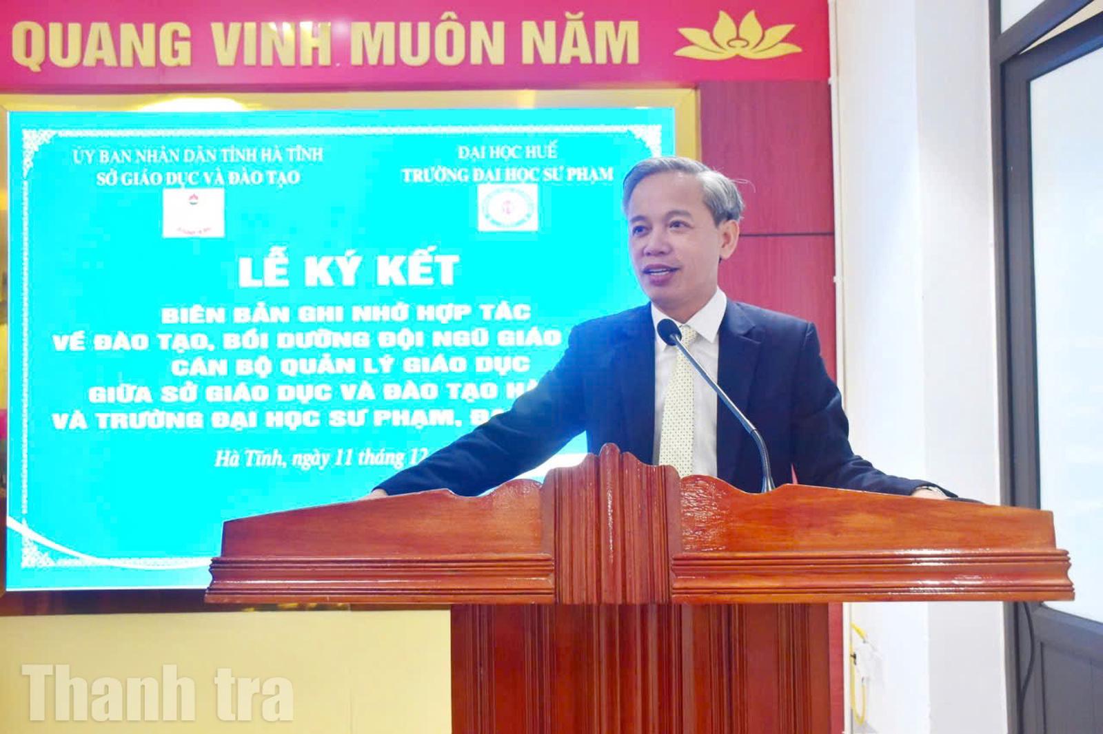 Phát biểu tại buổi lễ, ông Bùi Nhân Sâm, Giám đốc Sở GD&ĐT Hà Tĩnh, nhấn mạnh: “Việc ký kết là giải pháp quan trọng nhằm đáp ứng yêu cầu nâng cao chất lượng đội ngũ trong bối cảnh giáo dục đang đổi mới mạnh mẽ.”