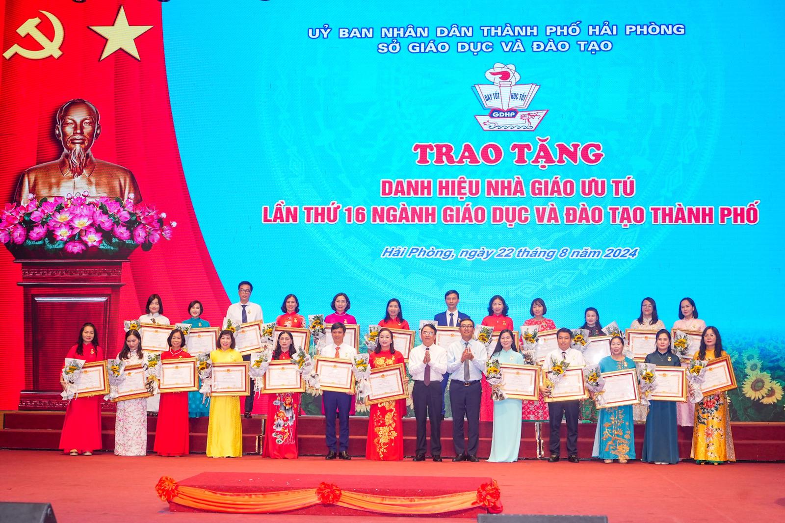 Nhân dịp này, 24 giáo viên của thành phố vinh dự được Nhà nước phong tặng danh hiệu “Nhà giáo ưu tú”; Sở Giáo dục và Đào tạo Hải Phòng nhận Cờ Thi đua của Bộ Giáo dục và Đào tạo.
