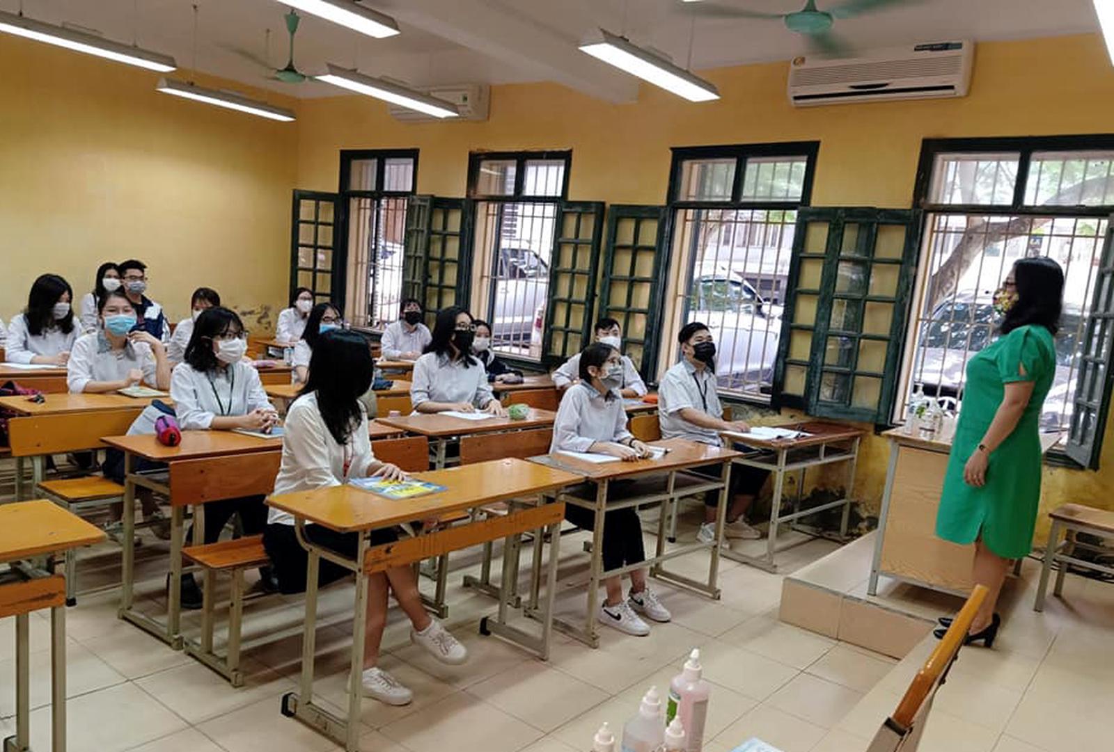 Hiện tại, để bảo đảm giãn cách trong tổ chức học tập, tại nhiều trường học của Hà Nội, mỗi lớp học được chia thành 2 lớp nhỏ, và chỉ học tại trường 3 buổi/tuần.