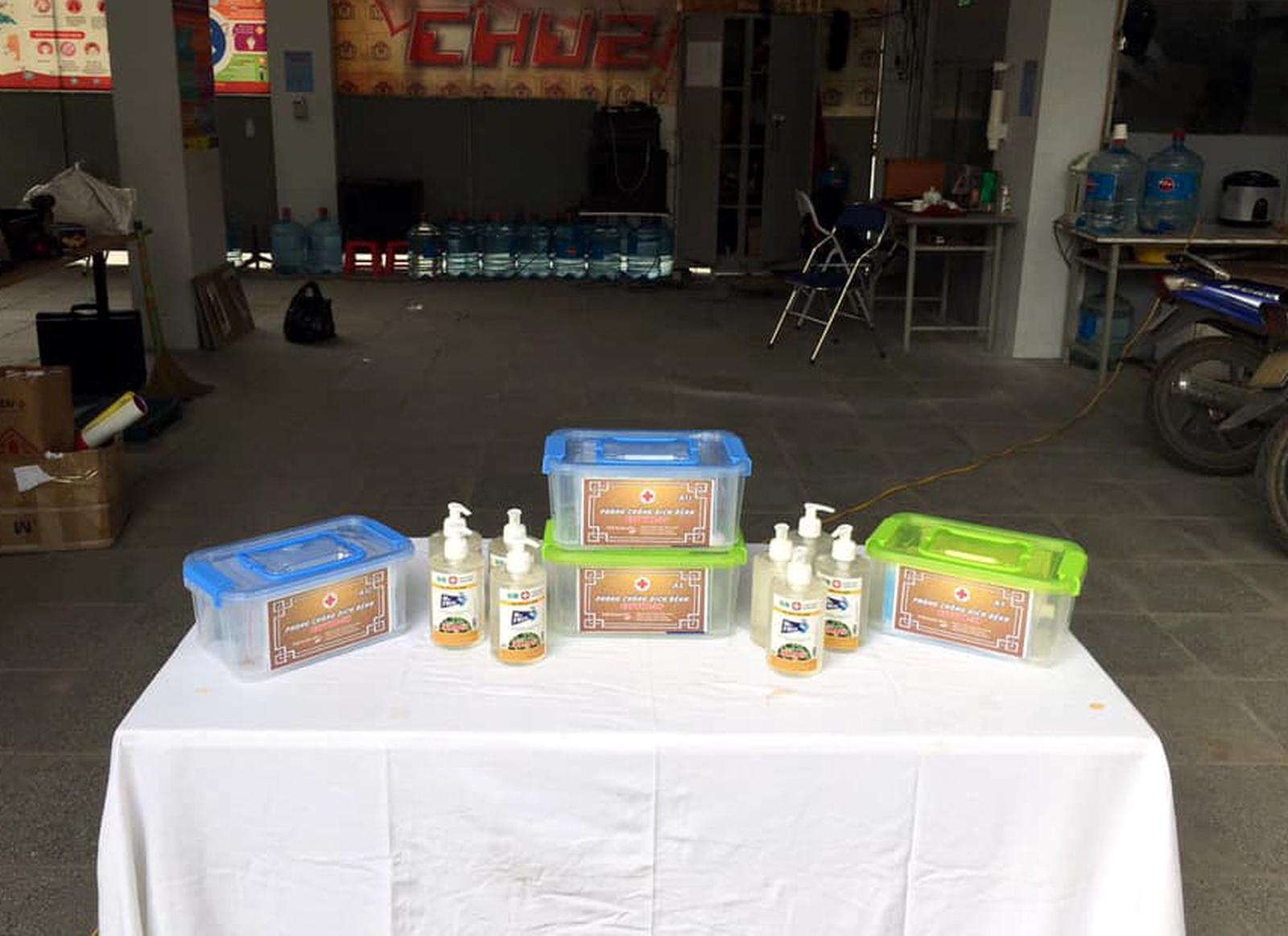 Bên cạnh việc trang bị đầy đủ thiết bị kiểm tra thân nhiệt, nước rửa tay, nước sát khuẩn tại từng lớp học, các thầy cô trong trường còn chế tạo những bình sát khuẩn tự động đặt trong trường.