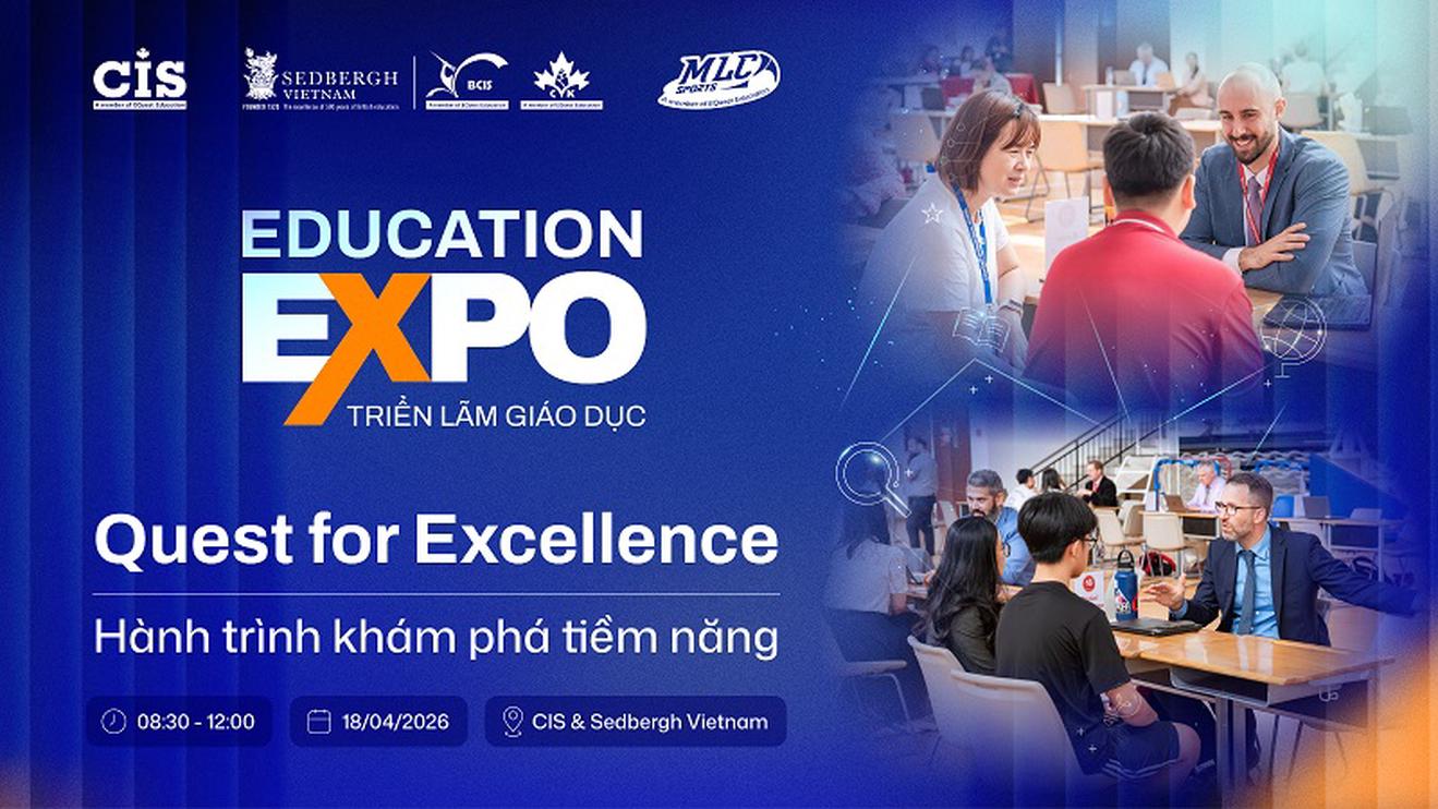 Sự kiện “Education Expo: Quest for Excellence” sẽ diễn ra từ 8h30 đến 12h00 ngày 18/4/2026 tại Trường Quốc tế Canada CIS và Sedbergh Vietnam. Đối tượng tham gia sẽ là các bạn học sinh từ lớp 4 đến lớp 10 và phụ huynh.