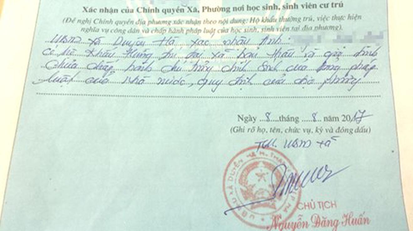 Thời gian gần đây, một số học sinh, sinh viên bị đại diện chính quyền địa phương bút phê "bản thân và gia đình chưa chấp hành chủ trương, chính sách của Đảng, pháp luật của Nhà nước, quy định của địa phương" vào tờ khai lý lịch, gây khó cho việc nhập học và xin việc làm khiến dư luận bức xúc.
