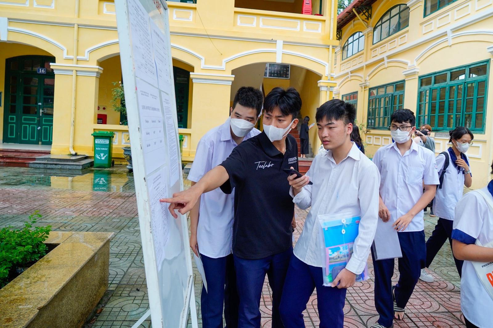 Các thí sinh tham dự kỳ thi tại điểm thi Trường THPT Ngô Quyền. Ảnh: KT