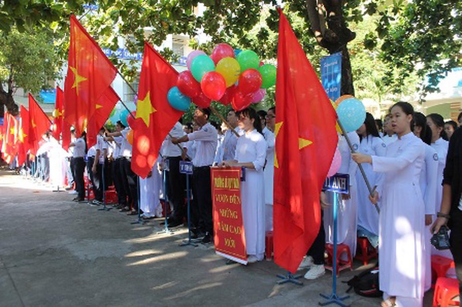 Quang cảnh học sinh dự lễ khai giảng tại TP Nha Trang. Ảnh: Xuân Hướng