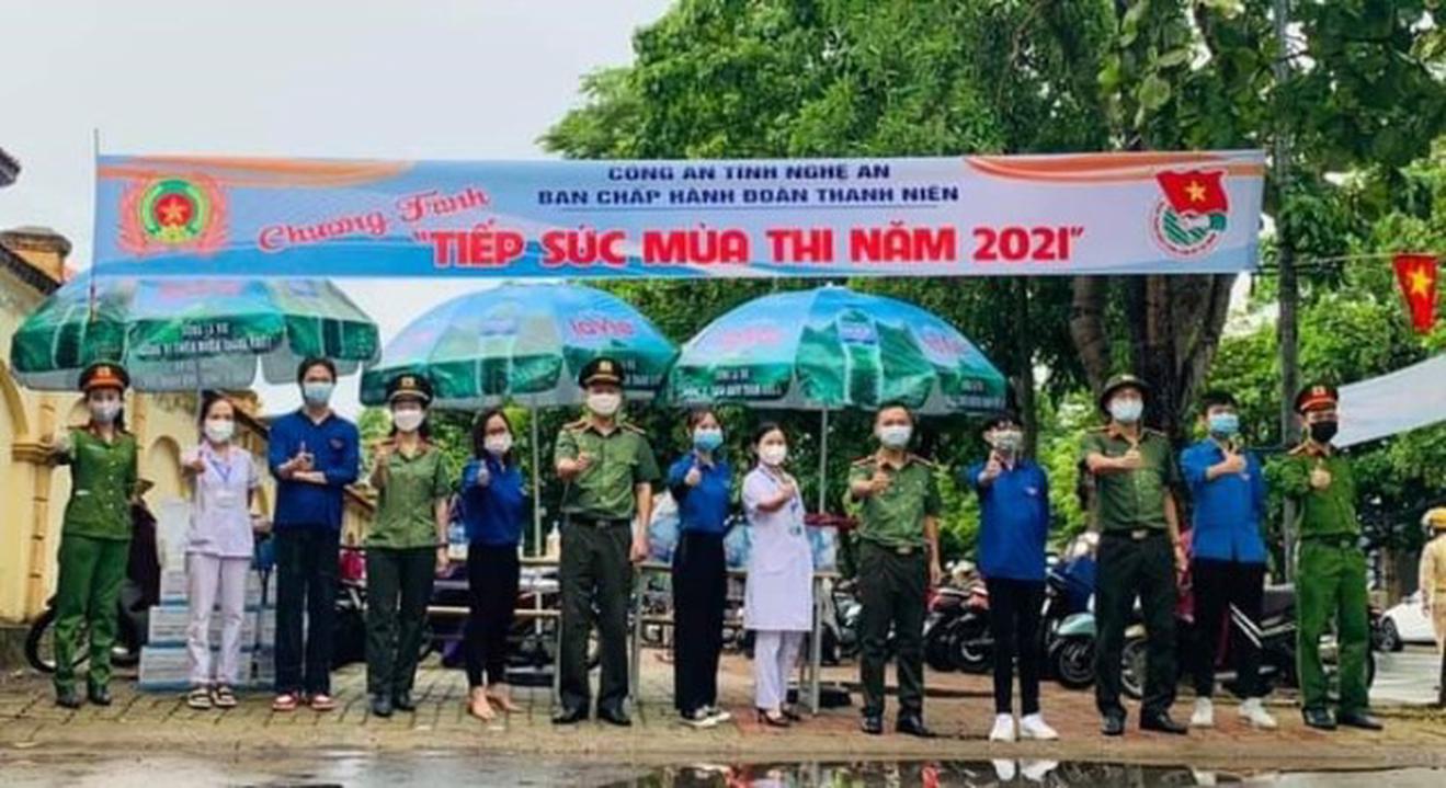 Đoàn Thanh niên Công an tỉnh tiếp sức mùa thi cho thí sinh. Ảnh: Xuân Thống