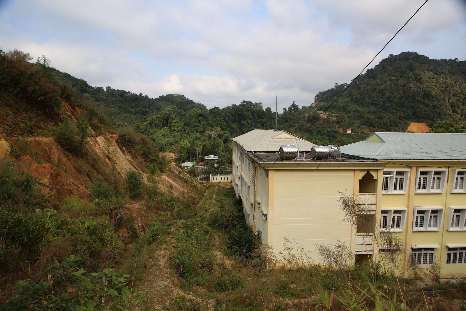 Huyện Tây Giang đề xuất phương án san ủi hạ thấp độ cao ngọn núi A Riing phía sau trường nhằm tránh sạt lở. Ảnh: N.P