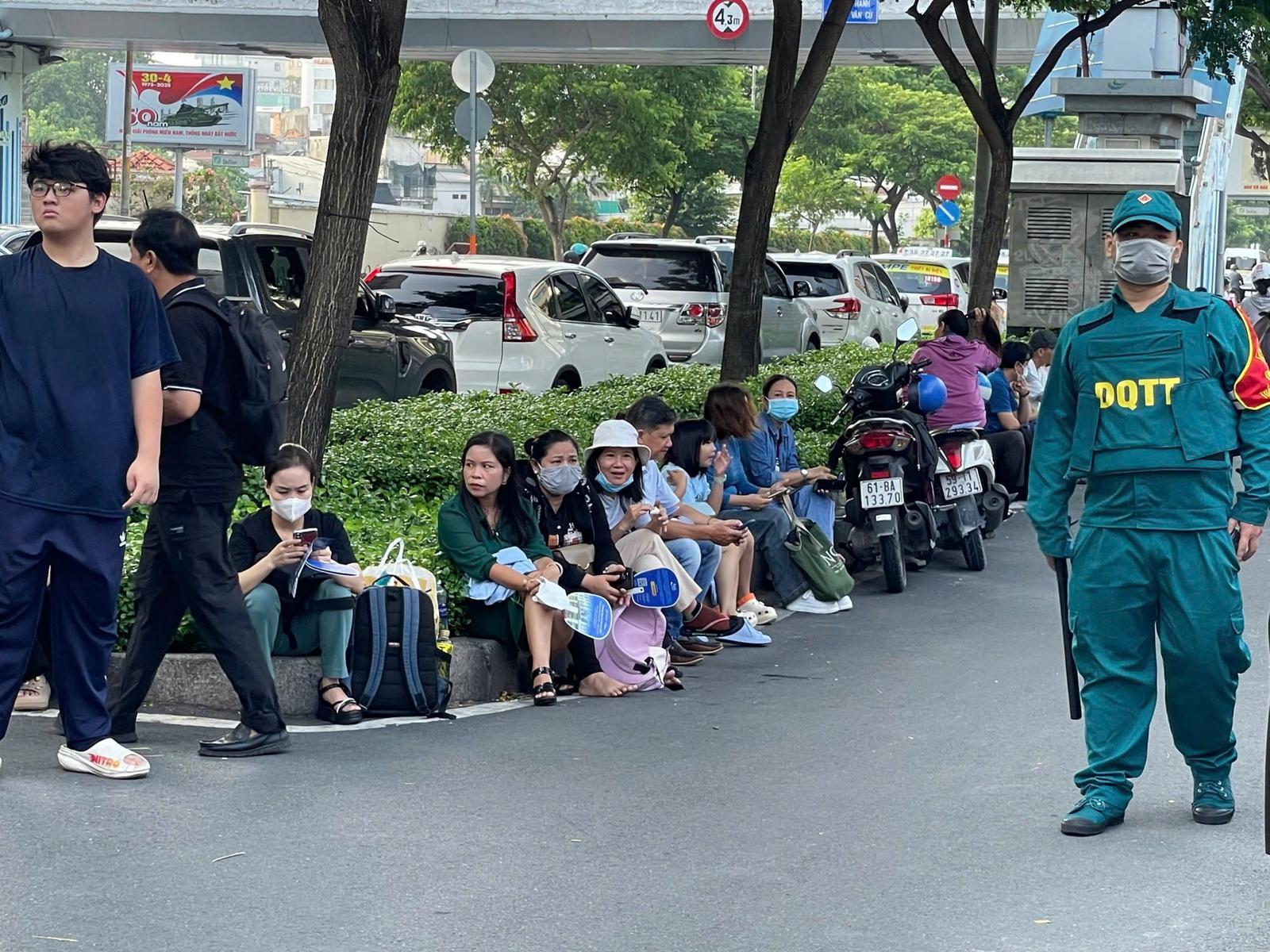 Nhiều bậc phụ huynh chọn chờ đợi con em trước cổng trường vì lo lắng. Ảnh: TM