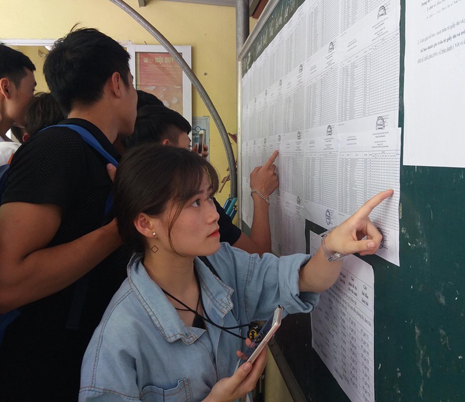 Thí sinh xem số báo danh trước khi bước vào kỳ thi. Ảnh: HH