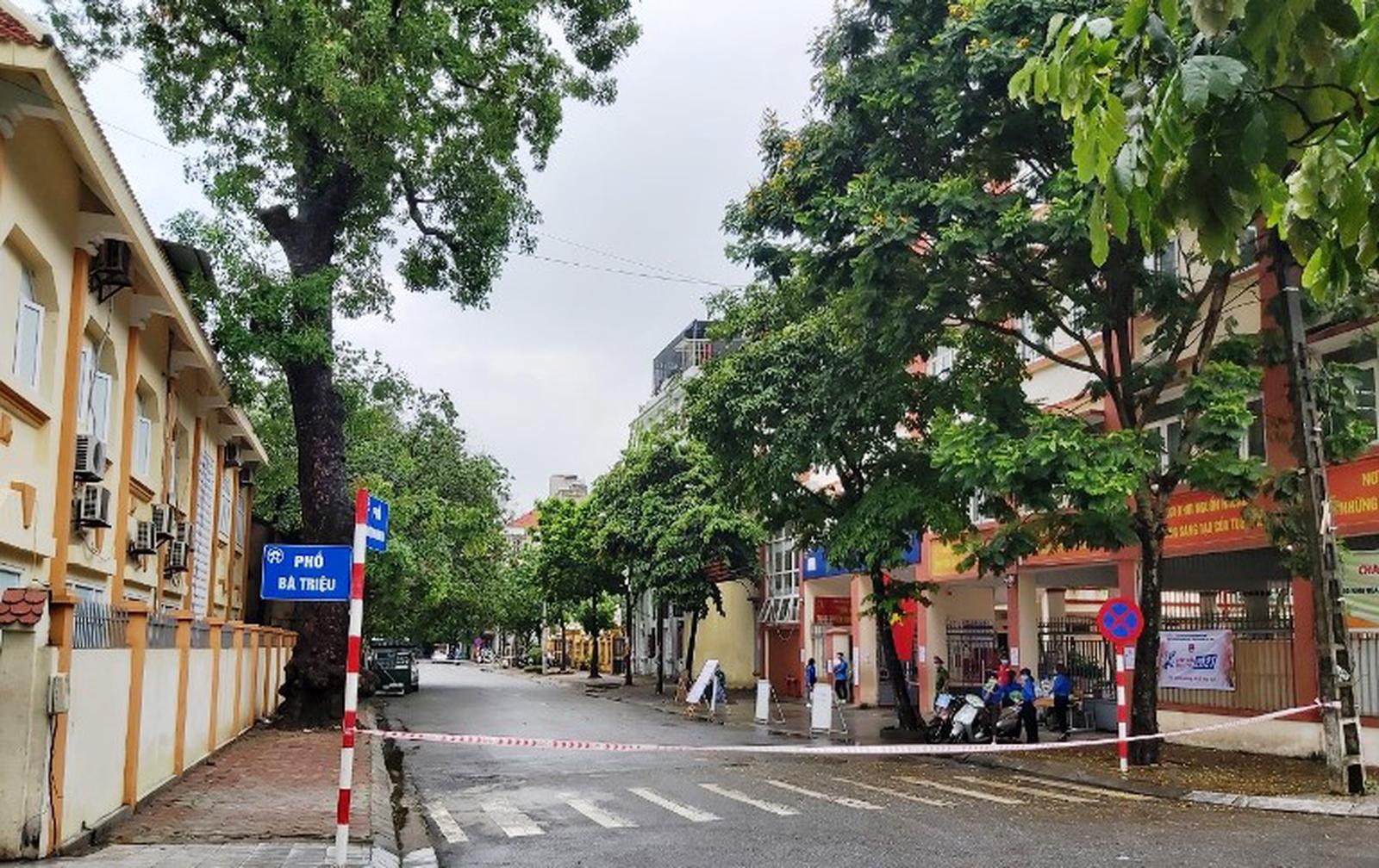Để đảm bảo an toàn trong phòng chống dịch, dây chắn được dựng lên ở 2 đầu cổng trường thi. Ảnh: HH