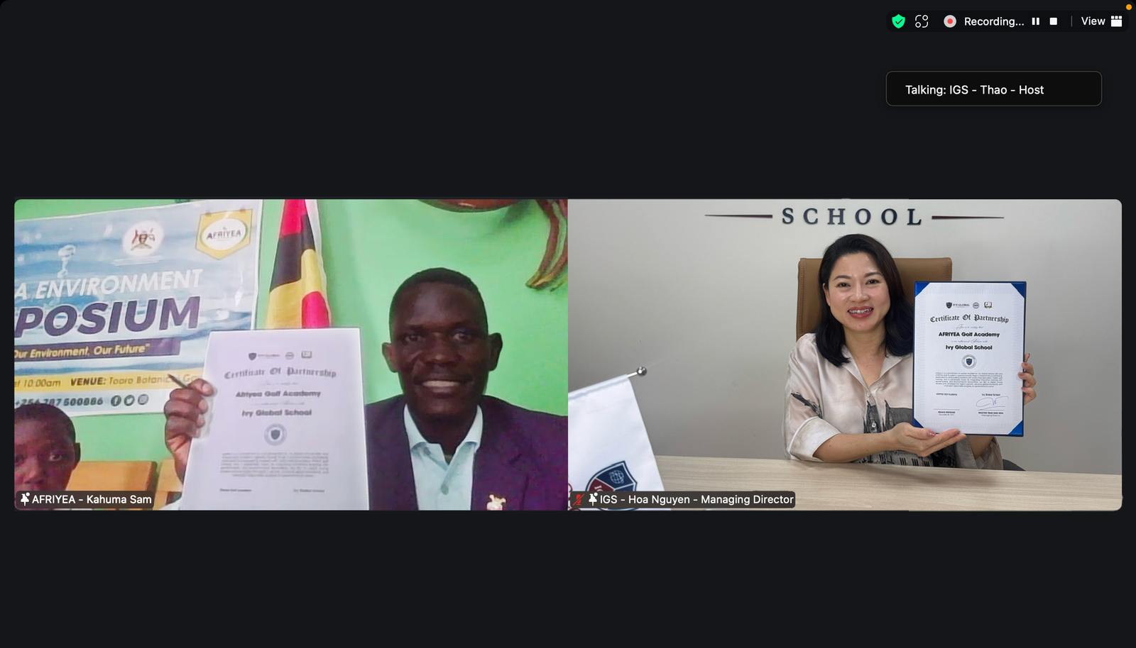 Song song với đó, IGS cũng chính thức thiết lập quan hệ đối tác chiến lược với AFRIYEA Golf Academy - ngôi nhà chung của nhiều tài năng trẻ trong làng golf Uganda.