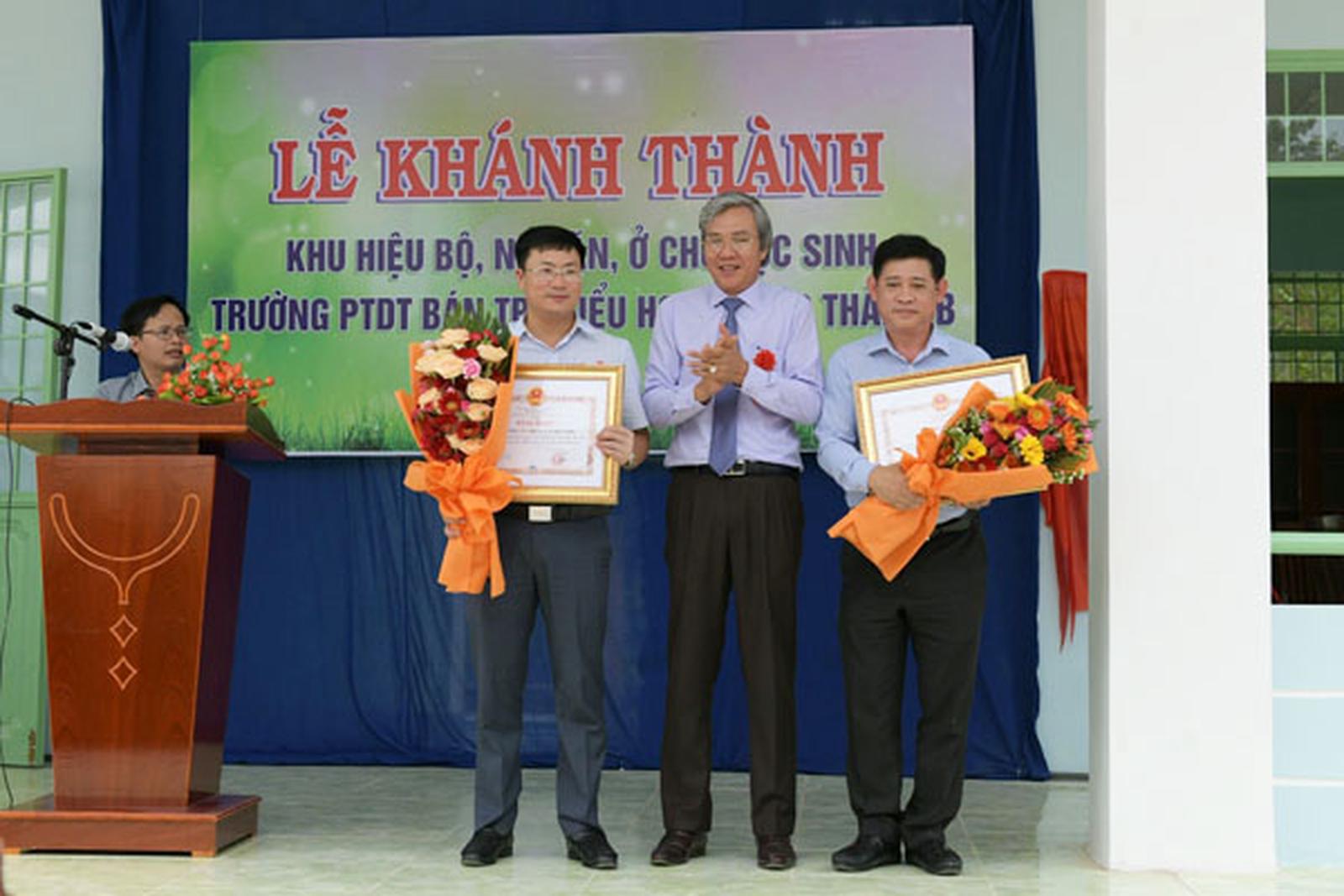 Cắt băng khánh thành công trình giai đoạn 2 Trường Tiểu học Phước Thành B. Ảnh: TT